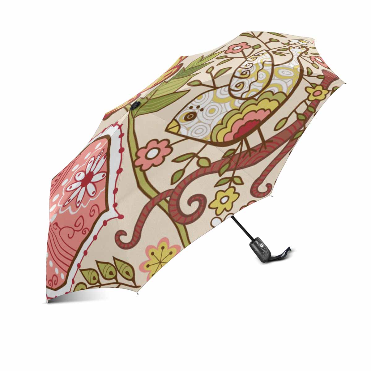 Beautiful colored flowers birds print Umbrella Automatic Foldable with totes