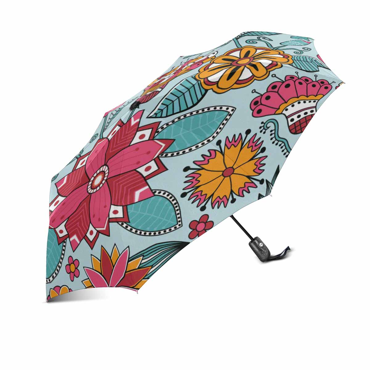 colorful flowers butterflies pattern print Umbrella Automatic Foldable with totes