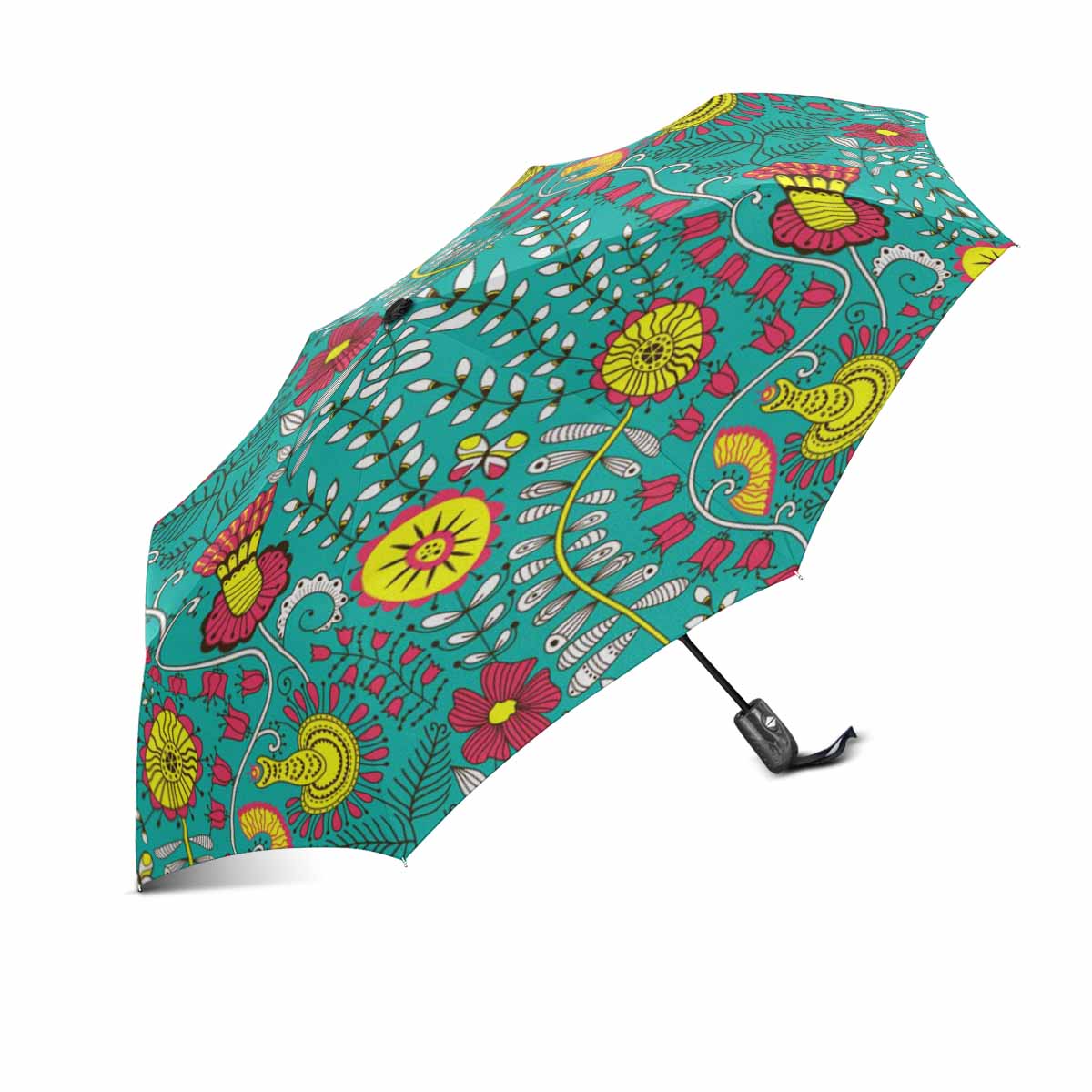 Colorful green flowers pattern Umbrella Automatic Foldable with totes