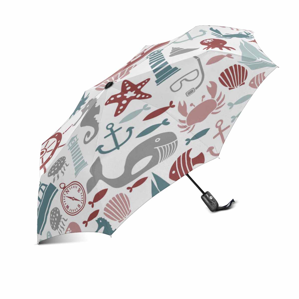 colorful pattern with sea icons automatic umbrella foldable with totes