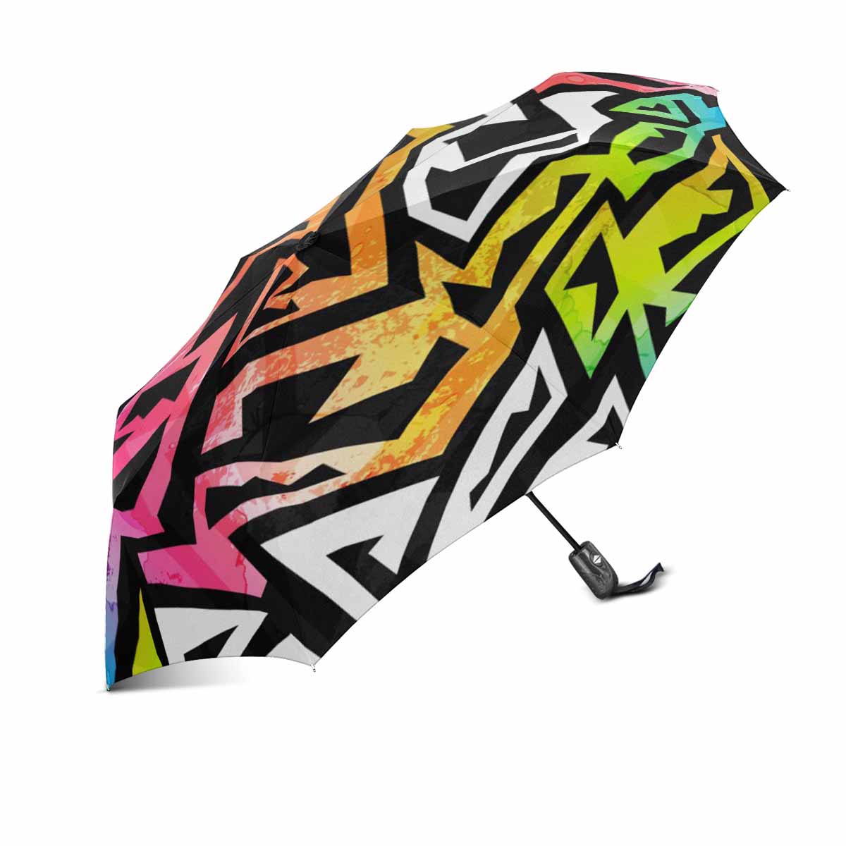 Rainbow color geometric pattern travel umbrella automatic windproof foldable