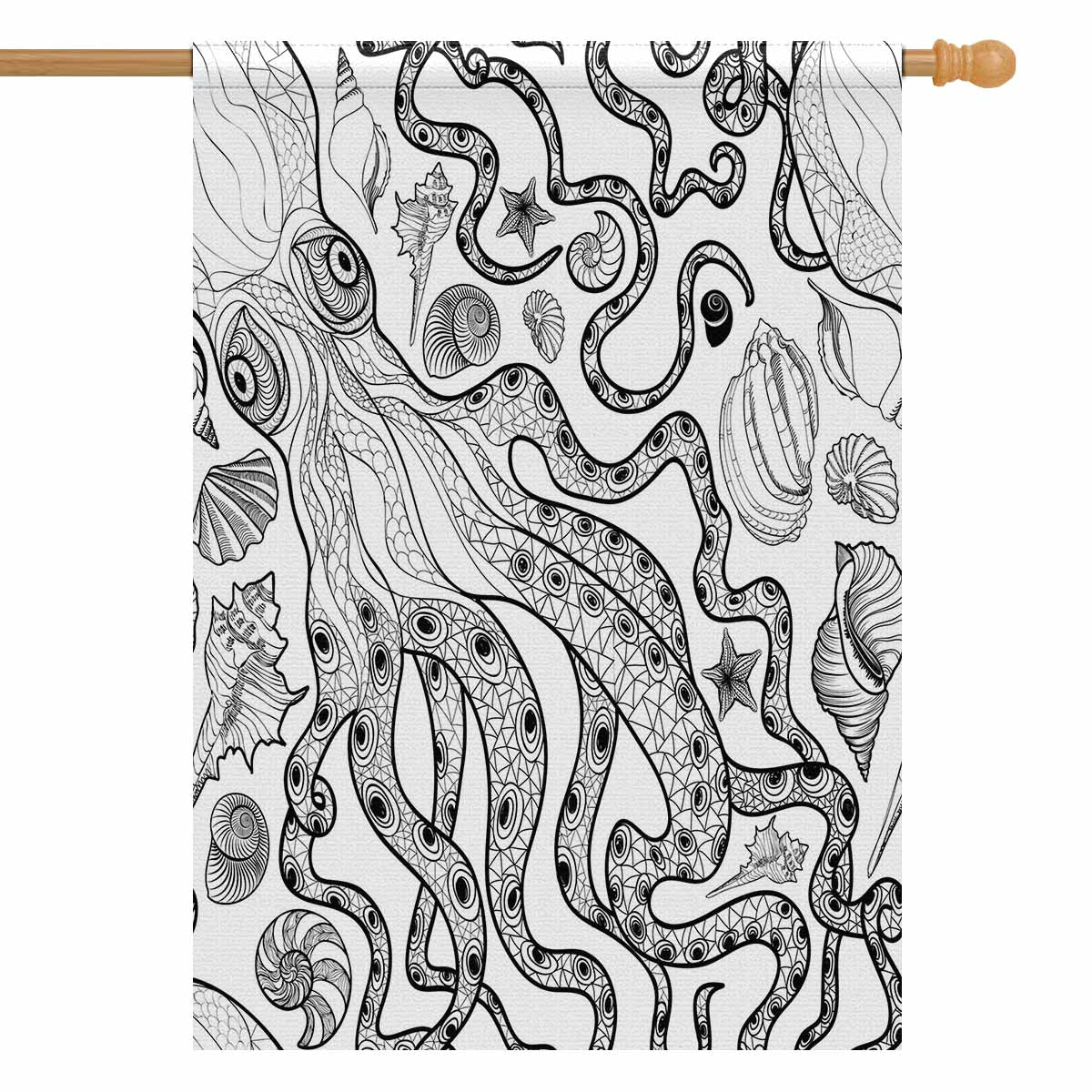 Garden Flags printed animals themed with Octopus and seashell pattern. Sea mollusk ornament. Marine life