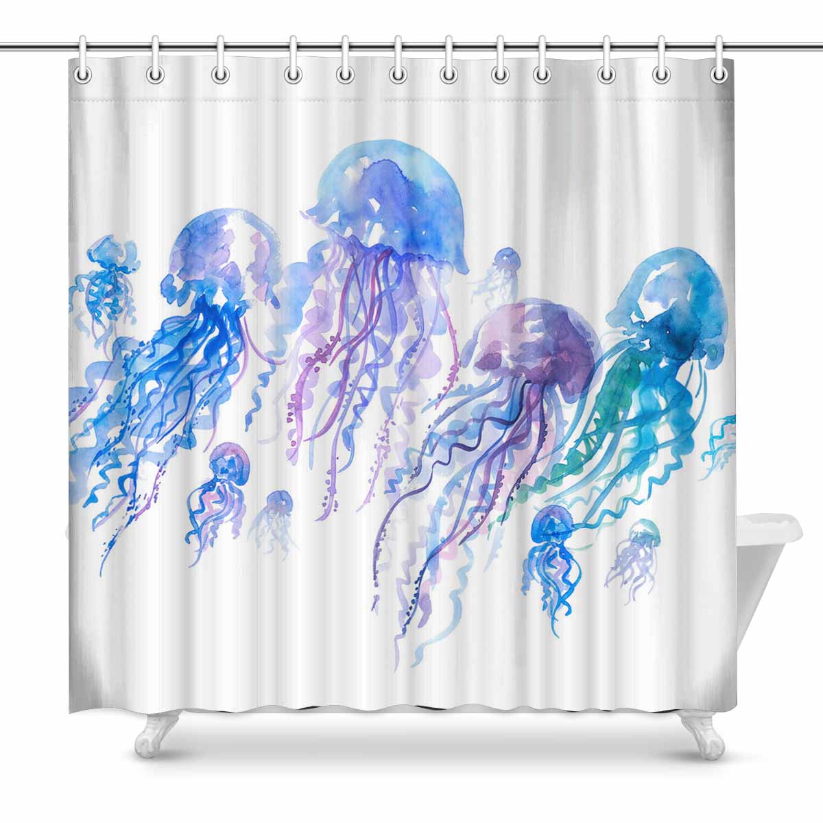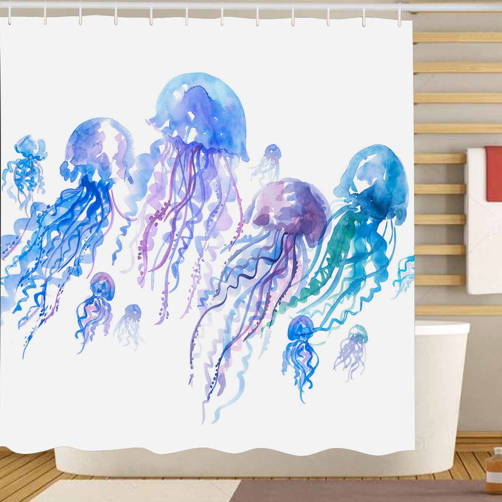 Shower Curtains print with Isolated jellyfish groop watercolor illustrationhandmade painting artwork