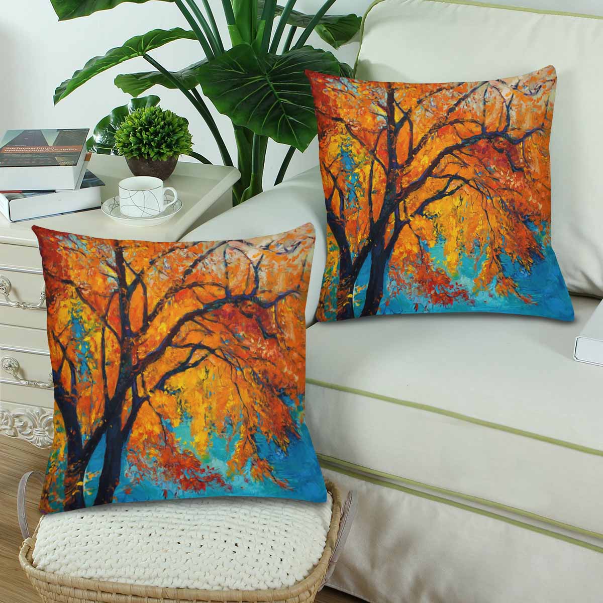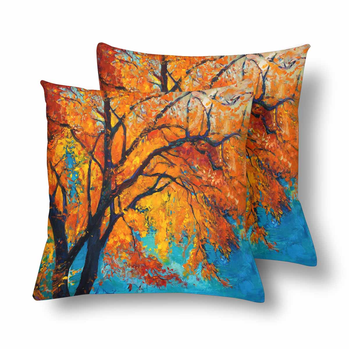 Arts themed Pillow Cases printed with Original oil painting showing beautiful Autumn tree