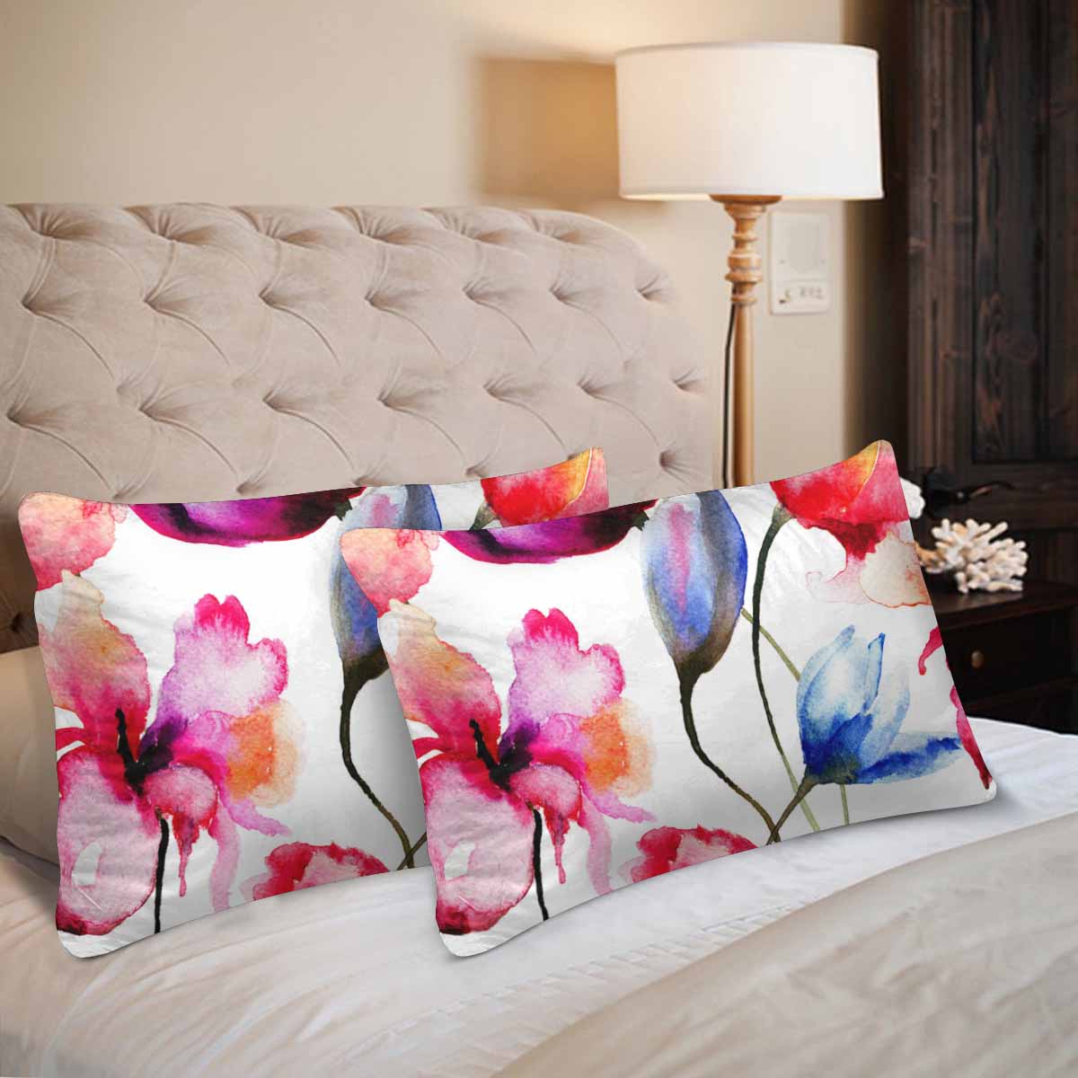 Arts themed Rectangle Pillow Cases printed Original watercolor illustration with flowers