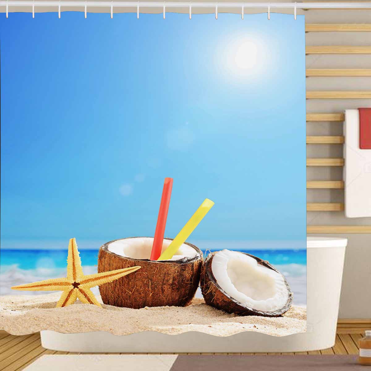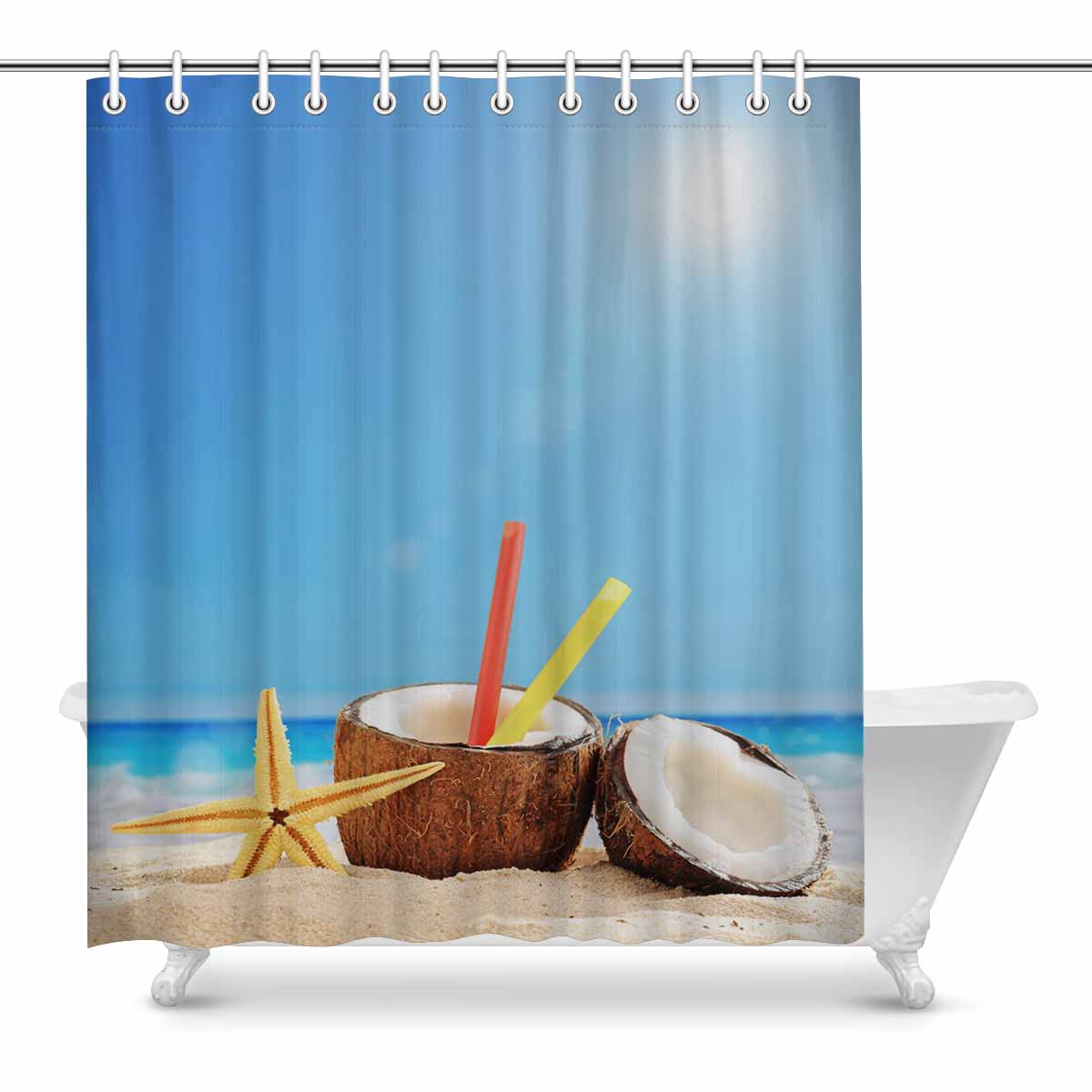 Beach and Ocean themed print on shower curtains for bathroom, create a brilliant atmosphere in your bathroom, include a selection of different stylish and custom-made designs for your bath decoration.