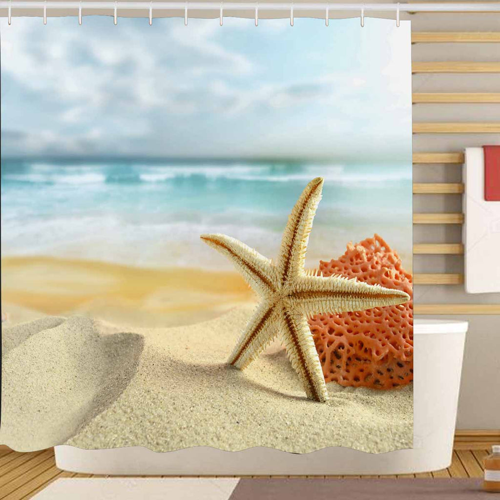 Beach and Ocean themed print on shower curtains for bathroom, create a brilliant atmosphere in your bathroom, include a selection of different stylish and custom-made designs for your bath decoration.