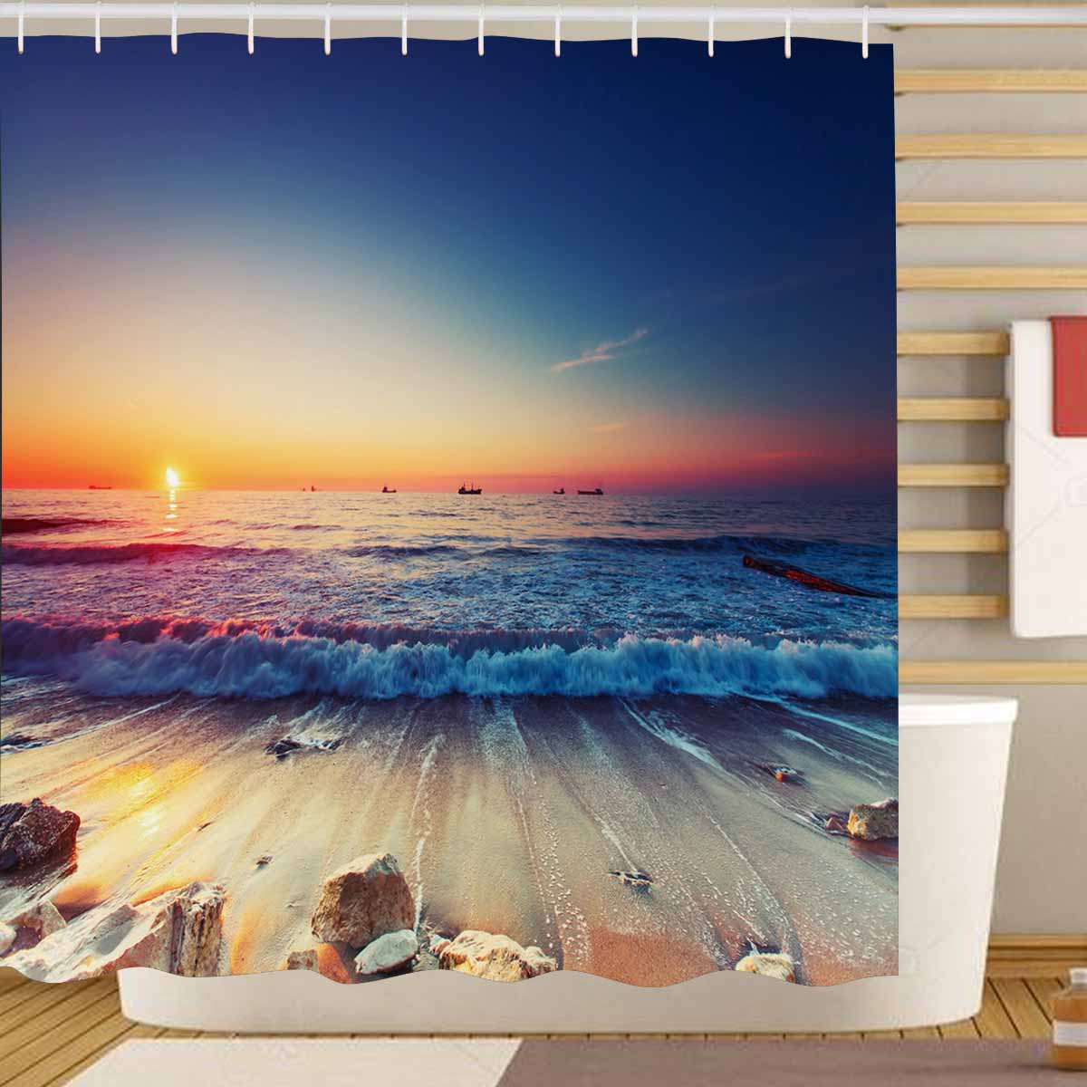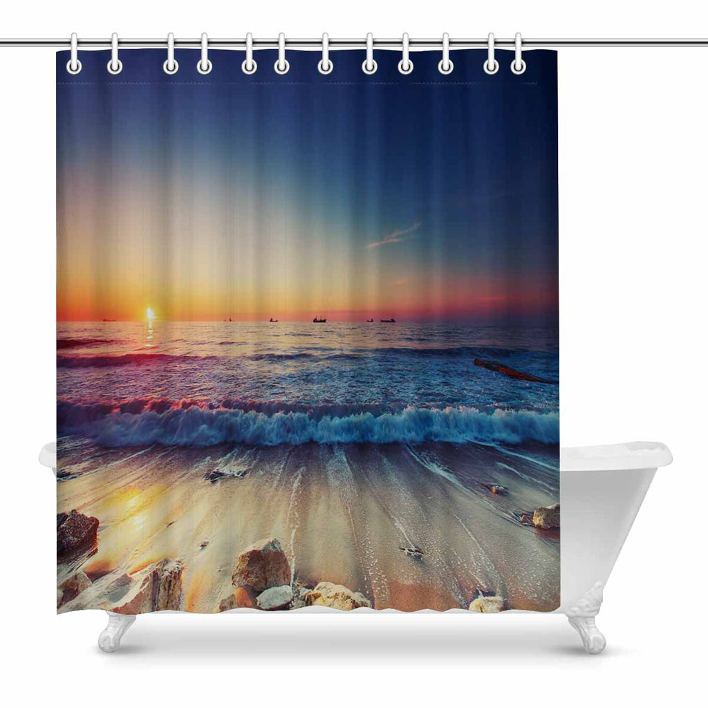Beach and Ocean themed print on shower curtains for bathroom, create a brilliant atmosphere in your bathroom, include a selection of different stylish and custom-made designs for your bath decoration.