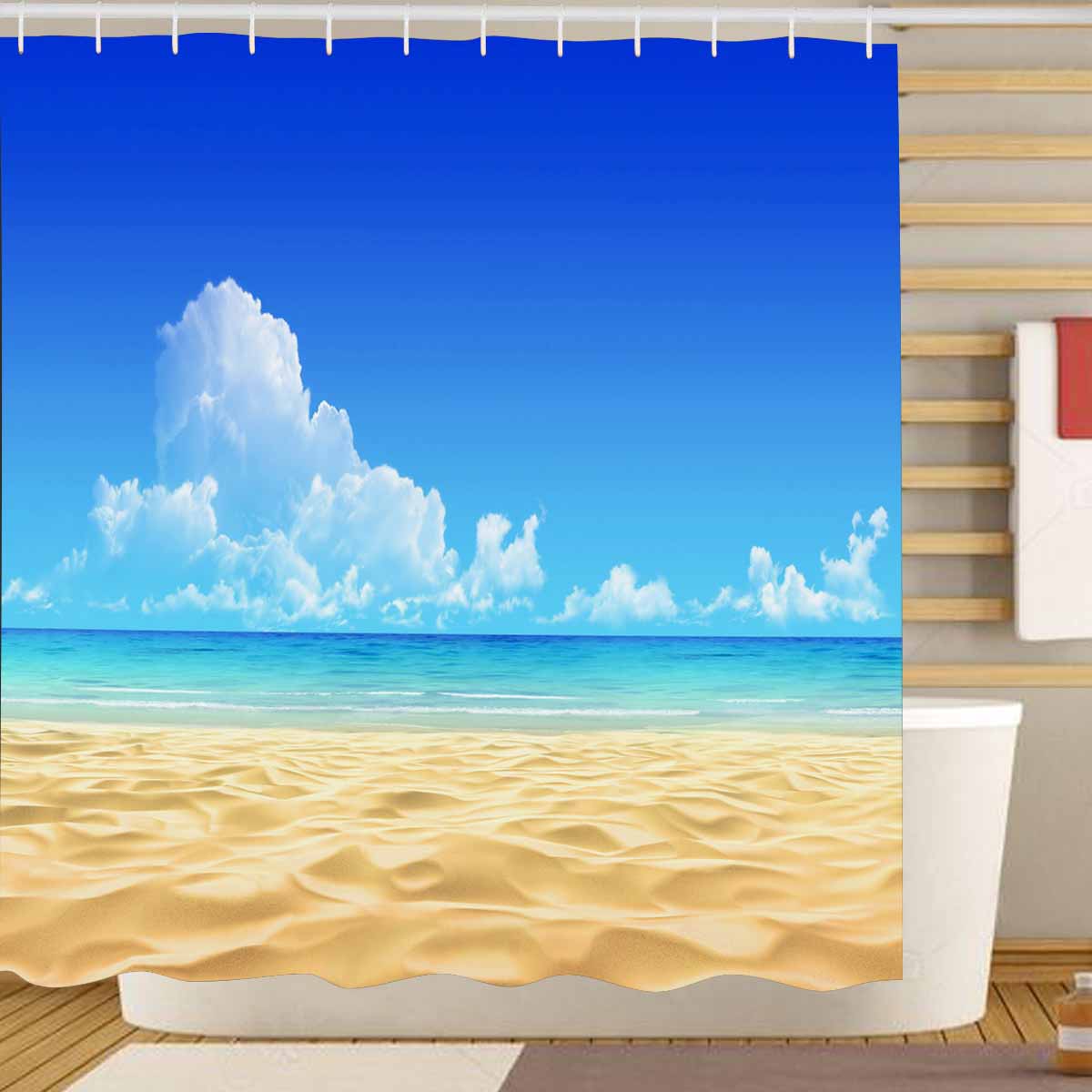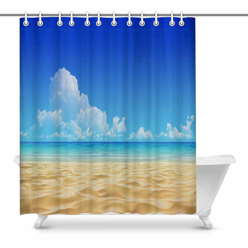 Beach and Ocean themed print on shower curtains for bathroom, create a brilliant atmosphere in your bathroom, include a selection of different stylish and custom-made designs for your bath decoration.
