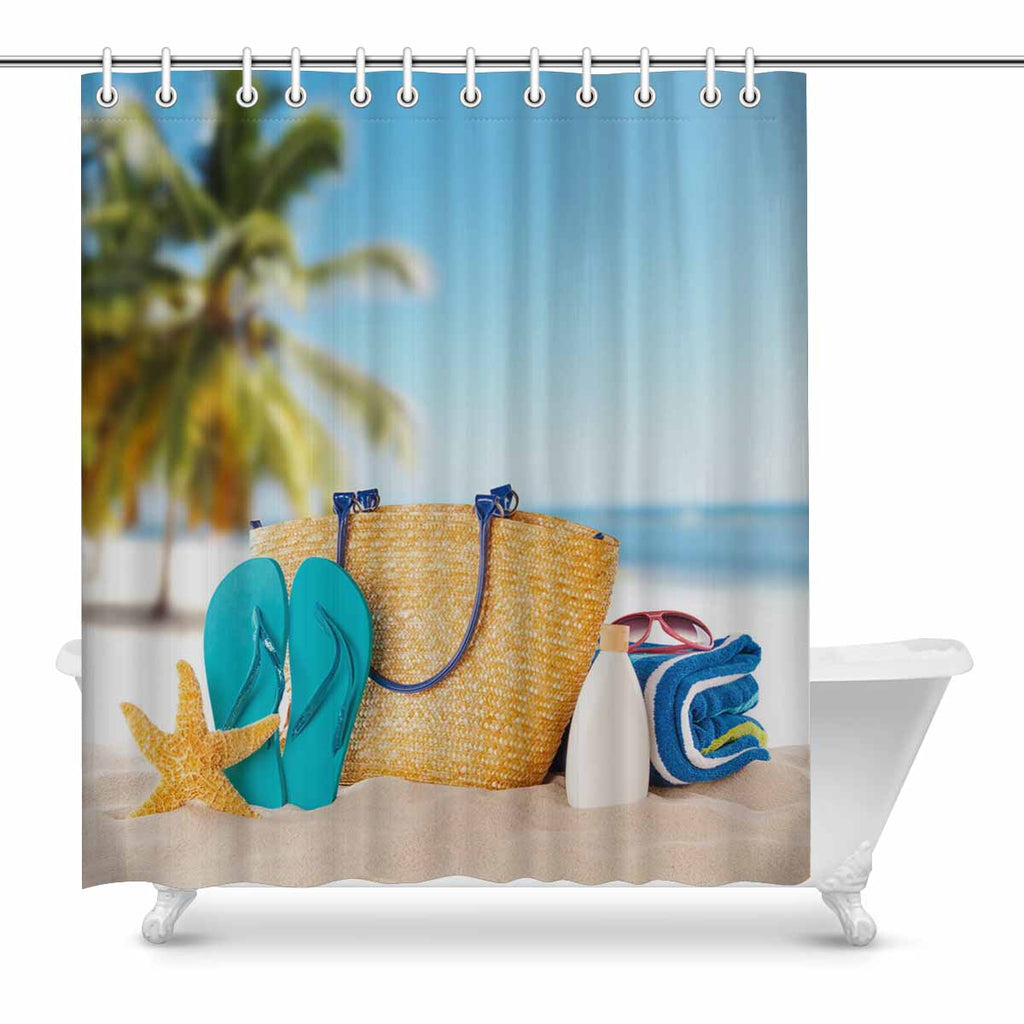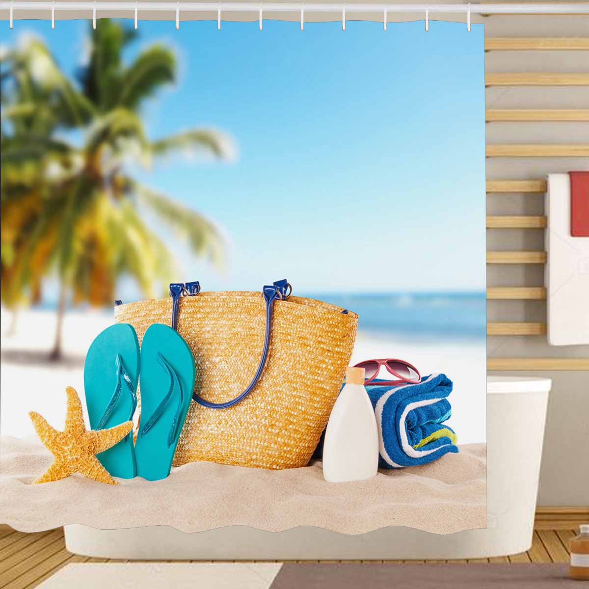 Beach and Ocean themed print on shower curtains for bathroom, create a brilliant atmosphere in your bathroom, include a selection of different stylish and custom-made designs for your bath decoration.