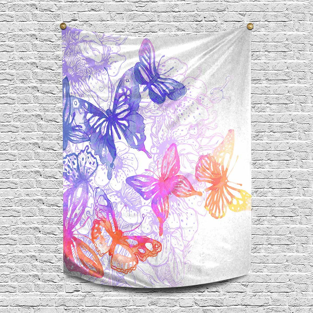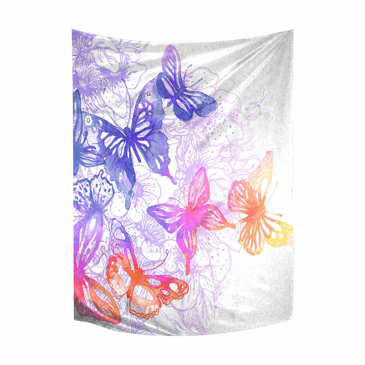 Wall Tapestries printed butterflies and flowers painted with watercolors