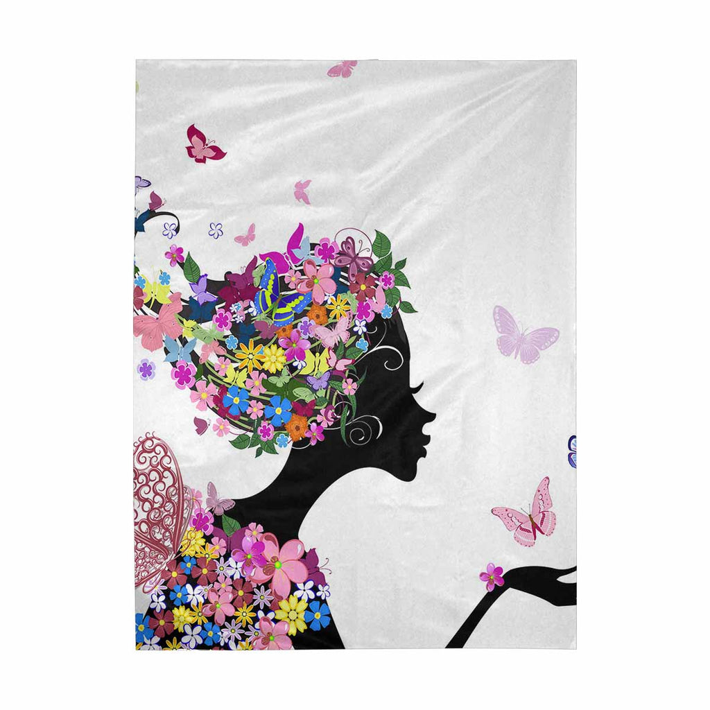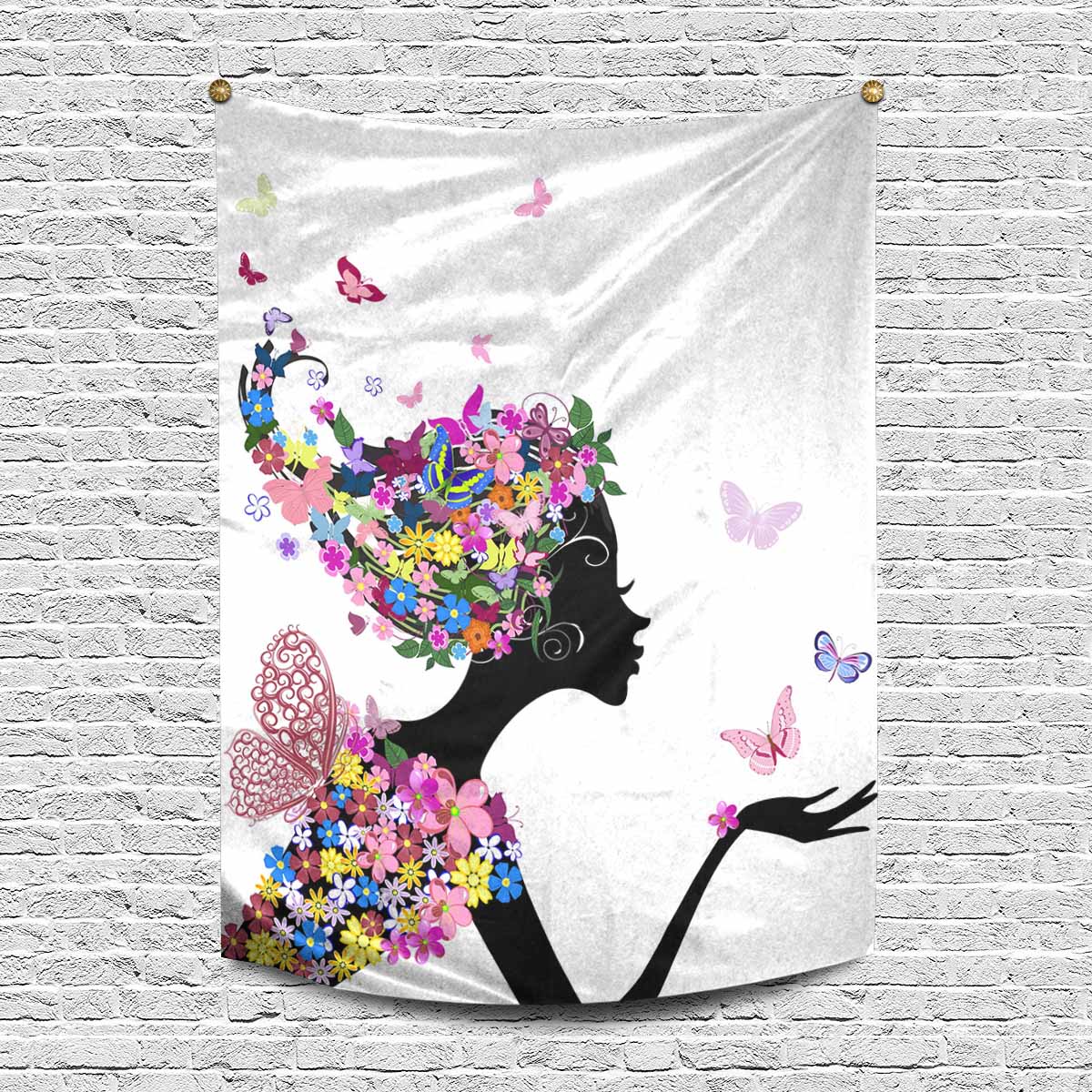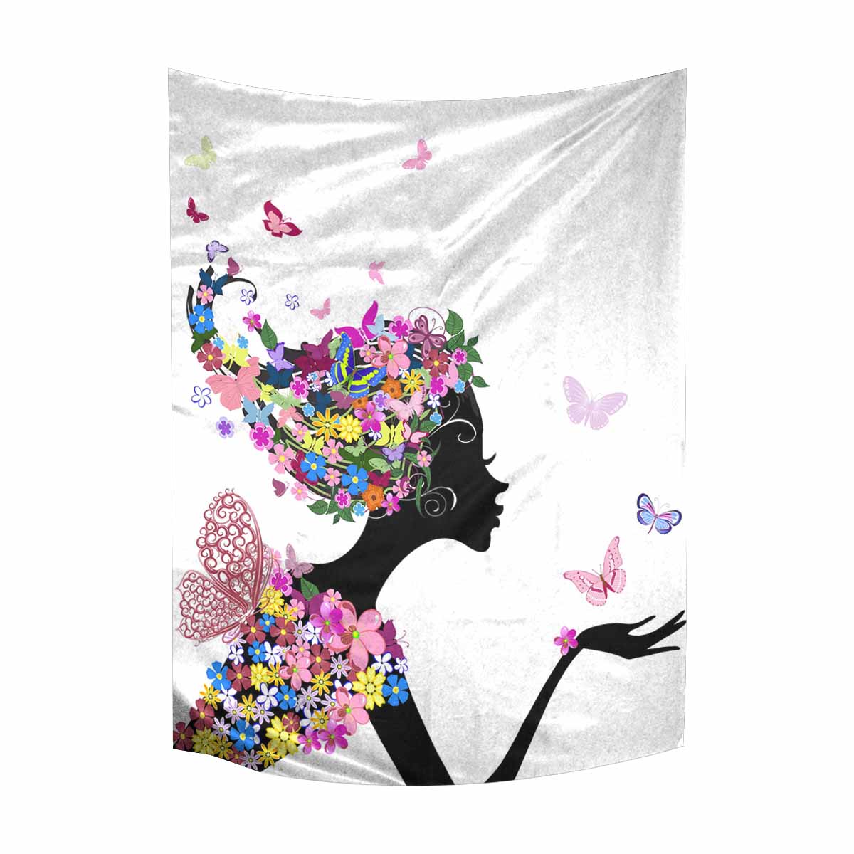 Wall Tapestries printed Girl with flowers and butterflies