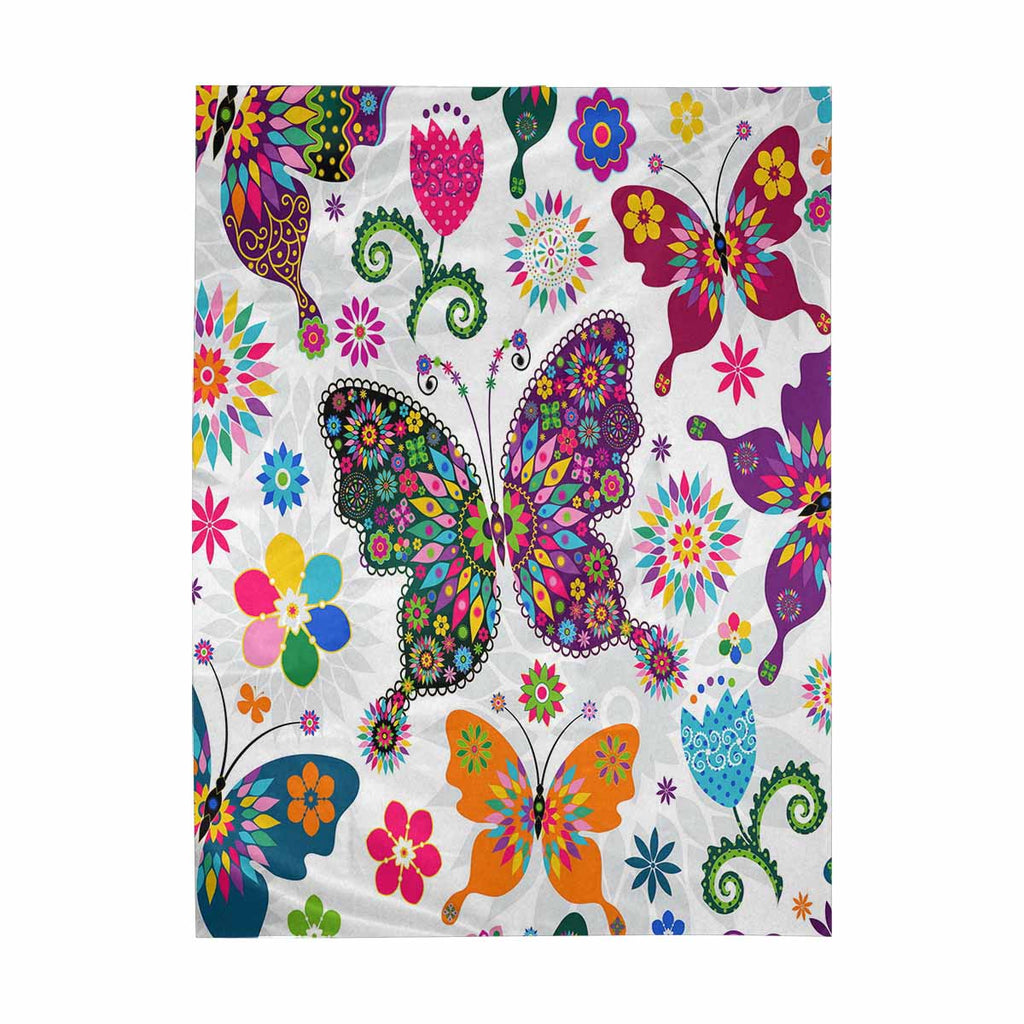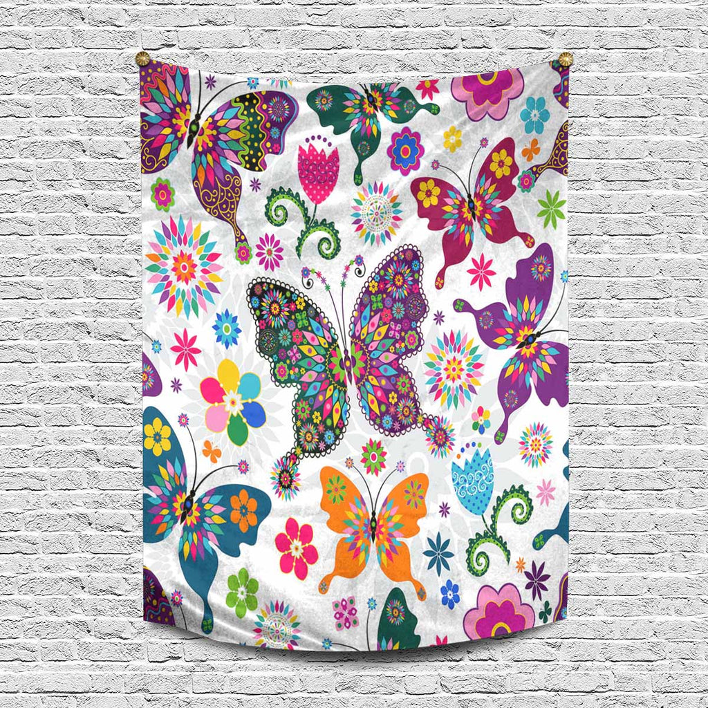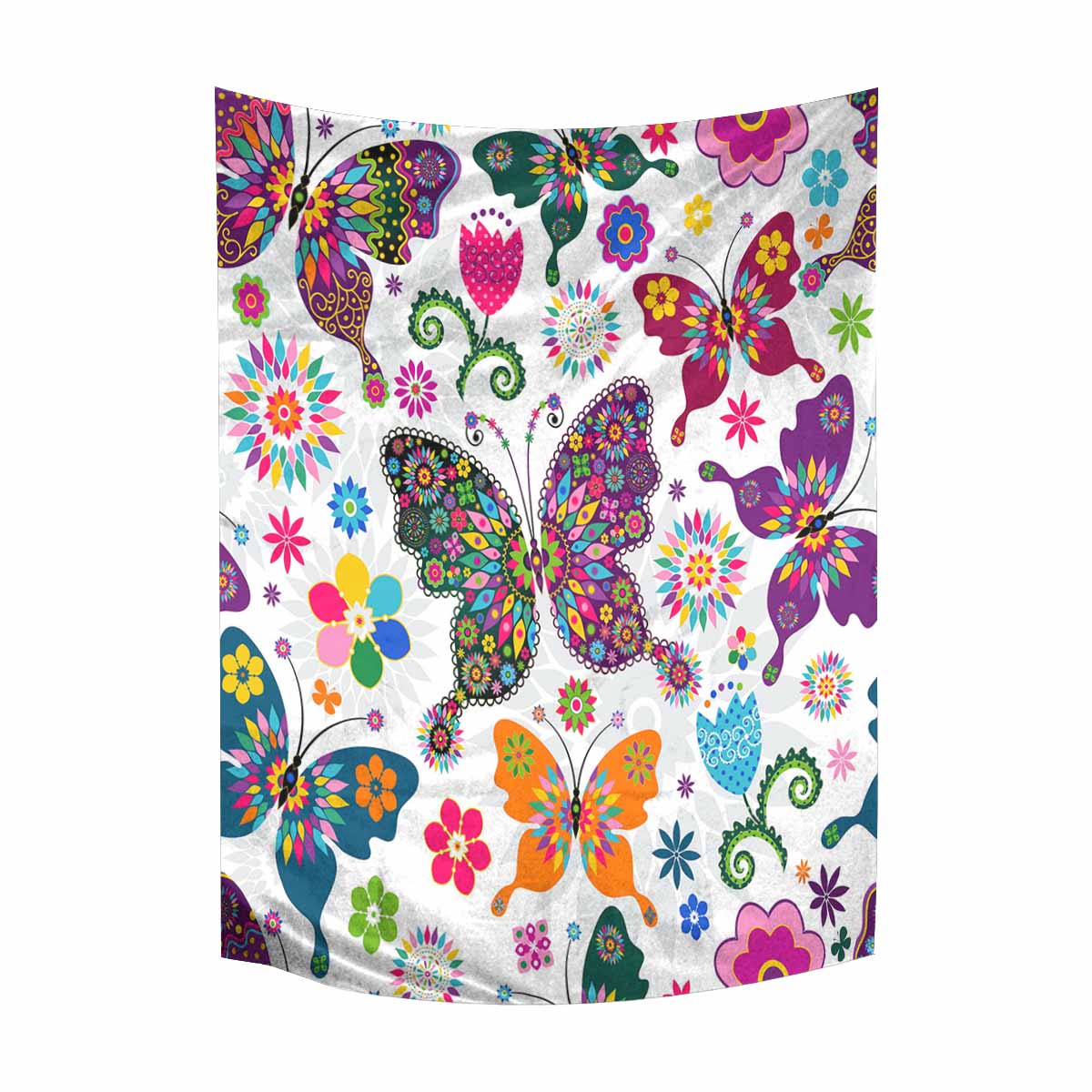 Wall Tapestries printed spring white floral pattern with colorful butterflies and flowers
