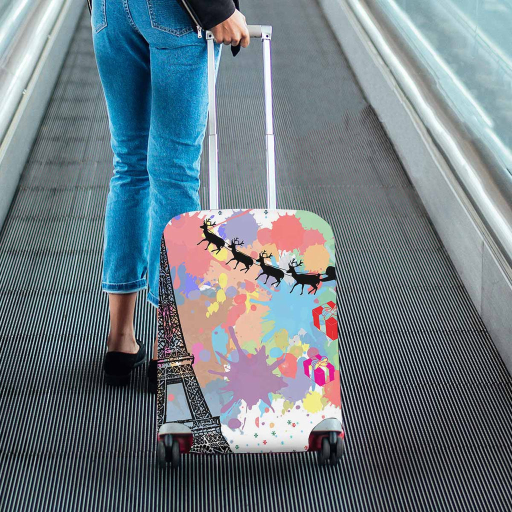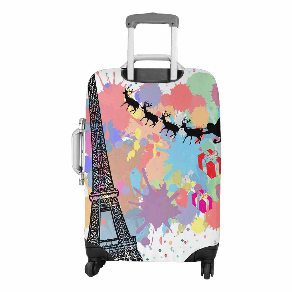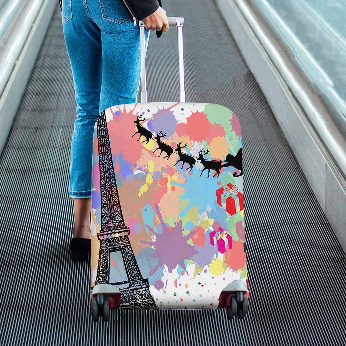 Coutry themed Cover for Luggage suitcase printed Santa's sleigh flying over Paris with clolored splash background