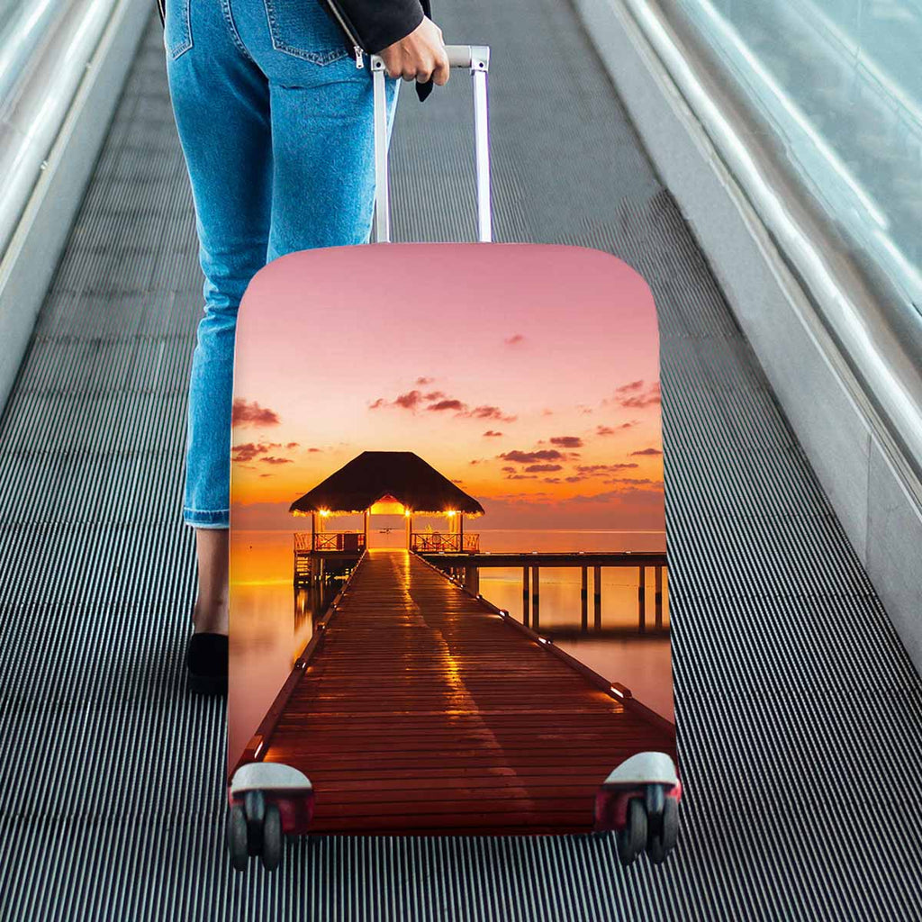 Coutry themed Cover for Luggage suitcase printed Water cafe at sunset