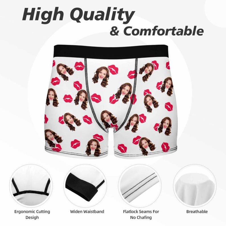 Custom Underwear with Face: Personalized Picture Text Boxers, Printed Wife's Face on Boxer Briefs