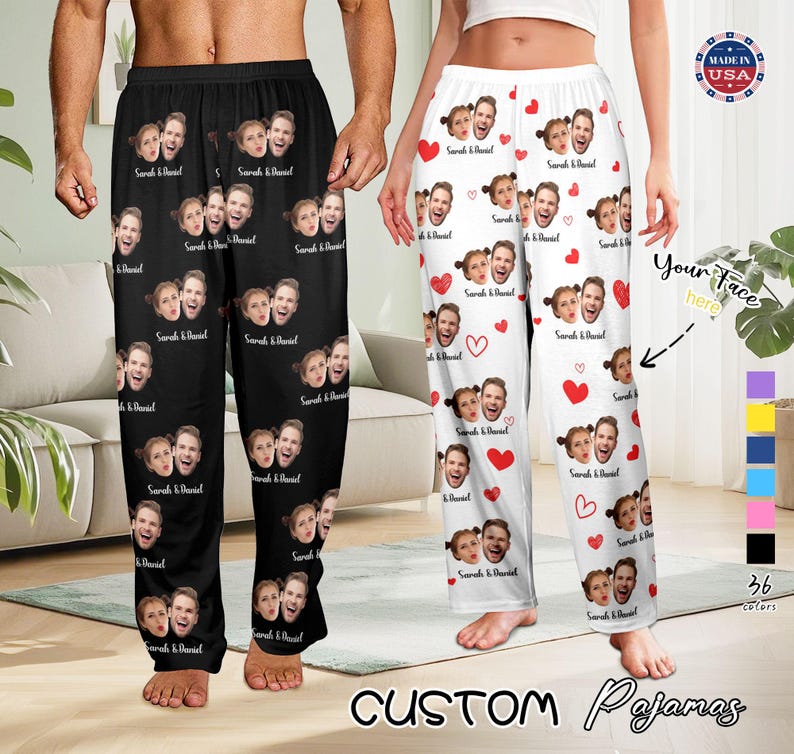 Custom Couple Photo Pajama Pants: Personalized Name PJs For Her Him