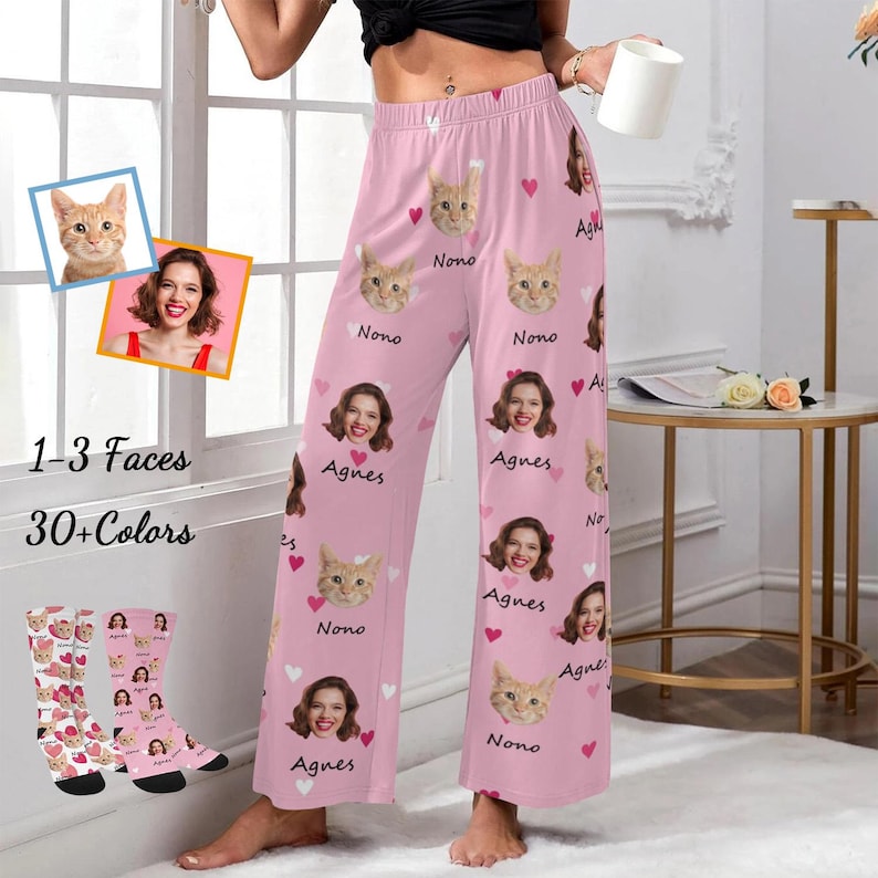 Make personalized pajamas for your loved ones, family and friends for all occasions, birthdays, anniversaries, Valentine's Day, Christmas, weddings, slumber parties and more. Print any faces/logos/words on real long pajamas or socks. Cheer you up, or show your love and support for your loved one with your great ideas.
