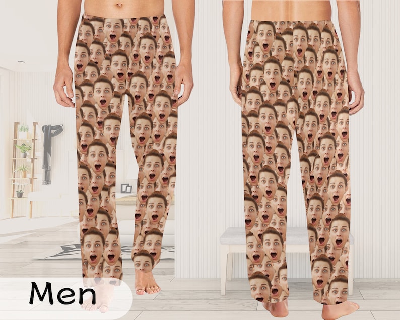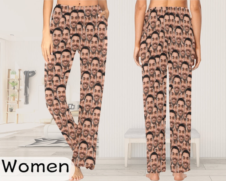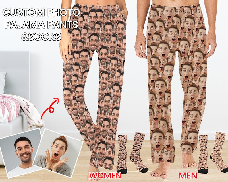 Custom Face Pajama Pants, Personalized Photo PJs, Anniversary Gift