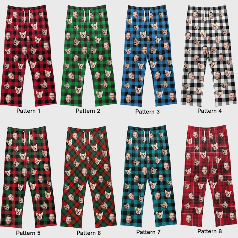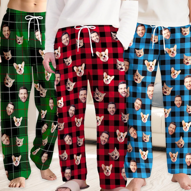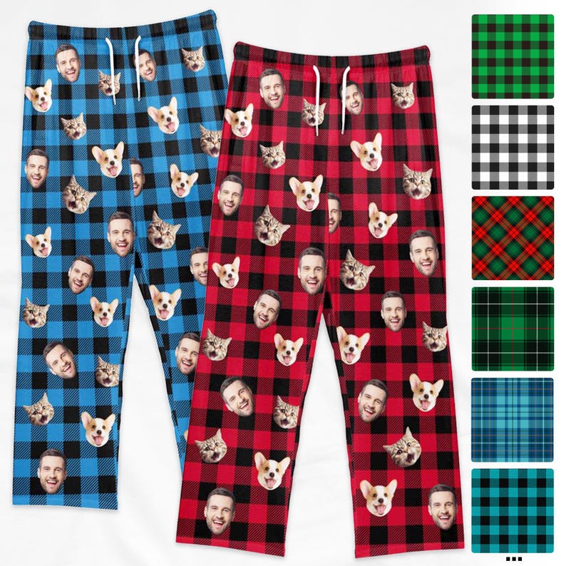 Custom Face Plaid Pajama Pants: Personalized Photo Trousers