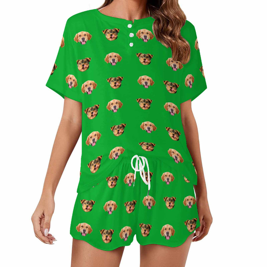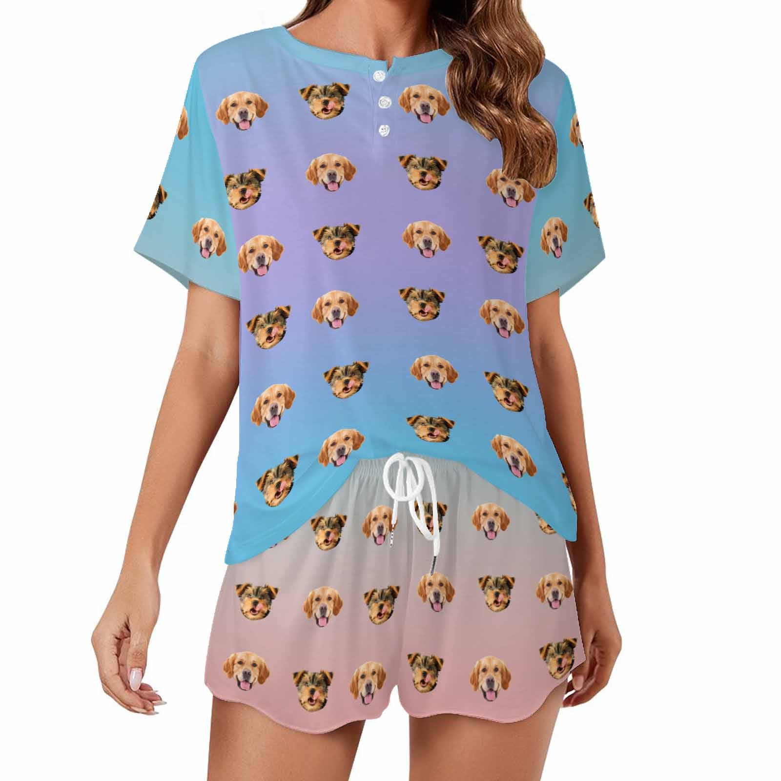 Custom Photo Women Pajama Sets Personalized Face Short Sleeve Sleepwear Nightwear Customized Gift for Her