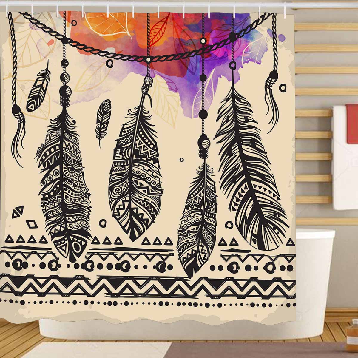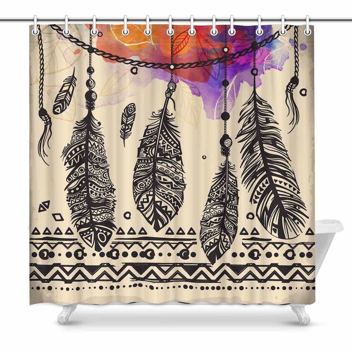Shower Curtains Ethnic themed print with Vintage feathers ethnic pattern