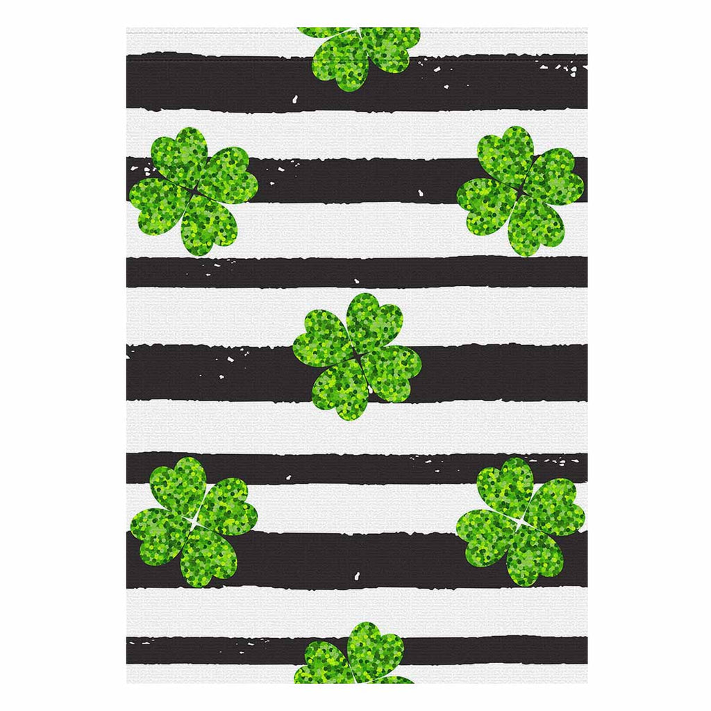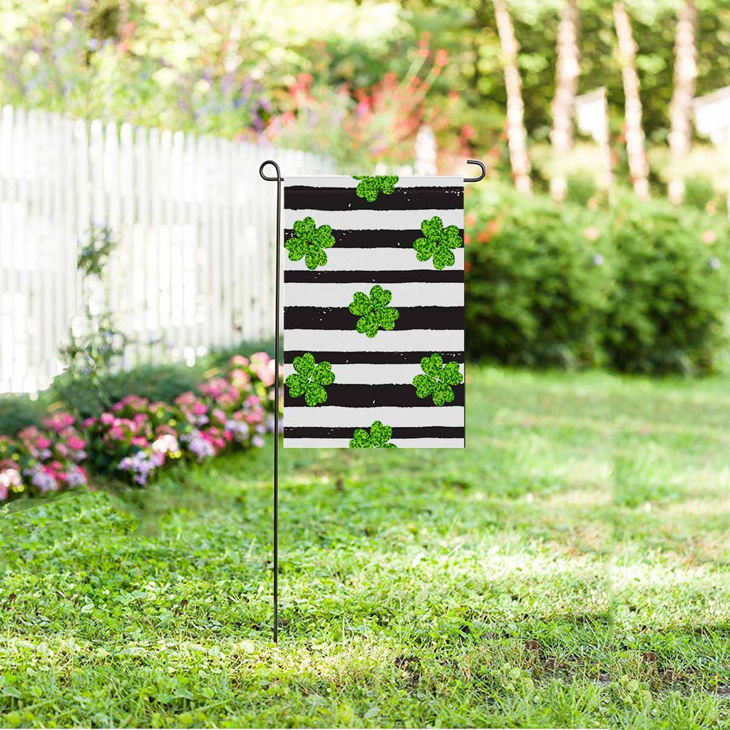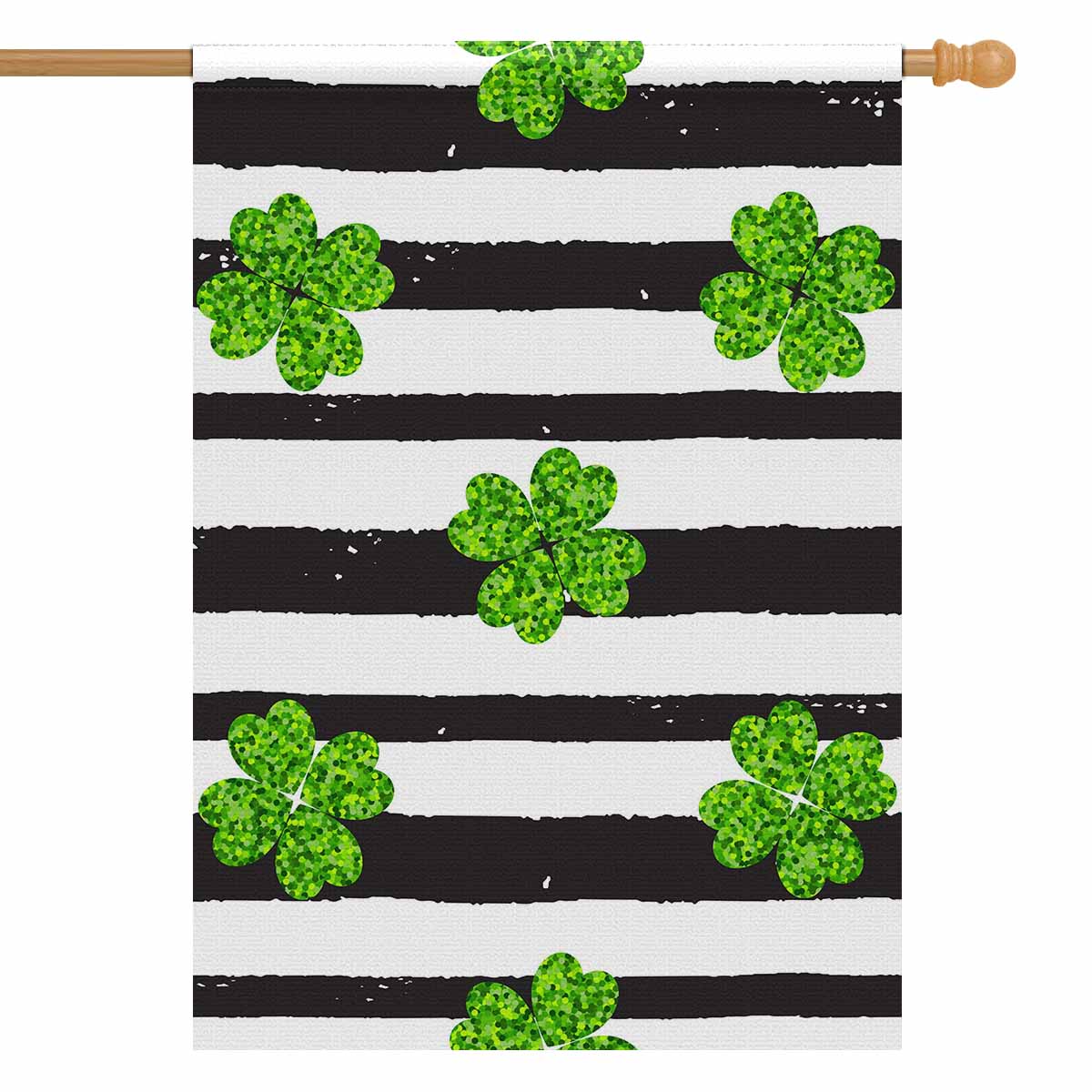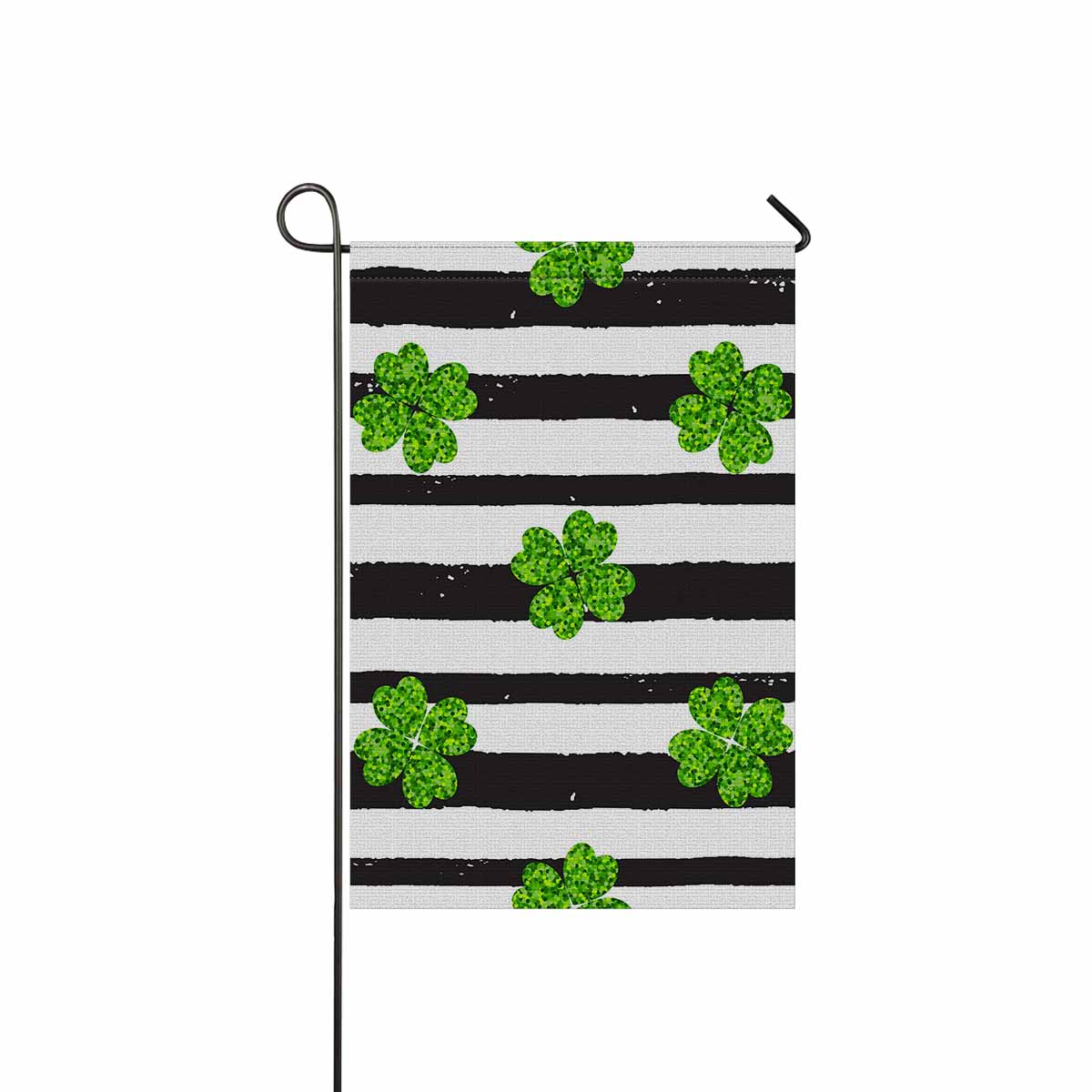 Garden Flags printed floral themed with Pattern with black lines and green clover