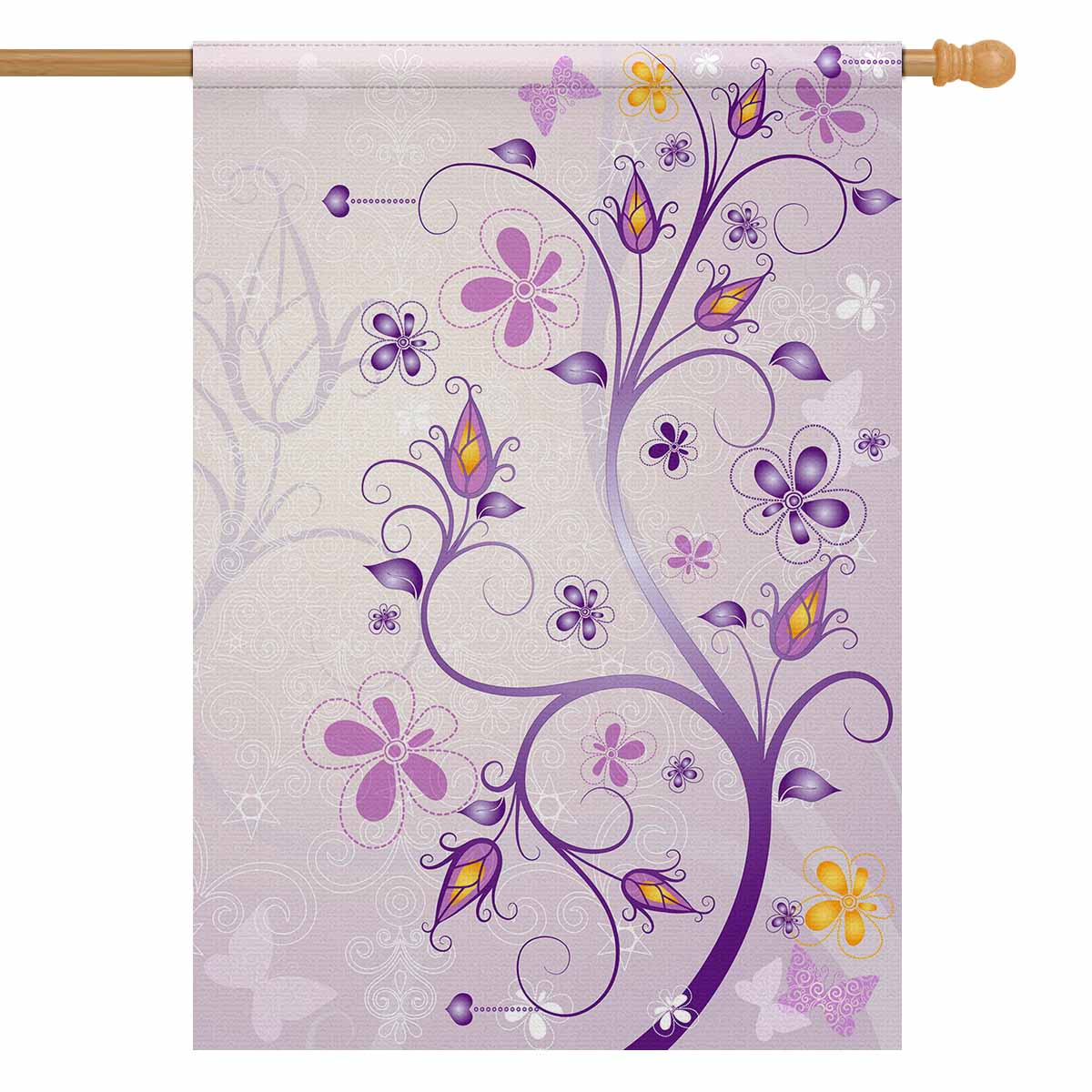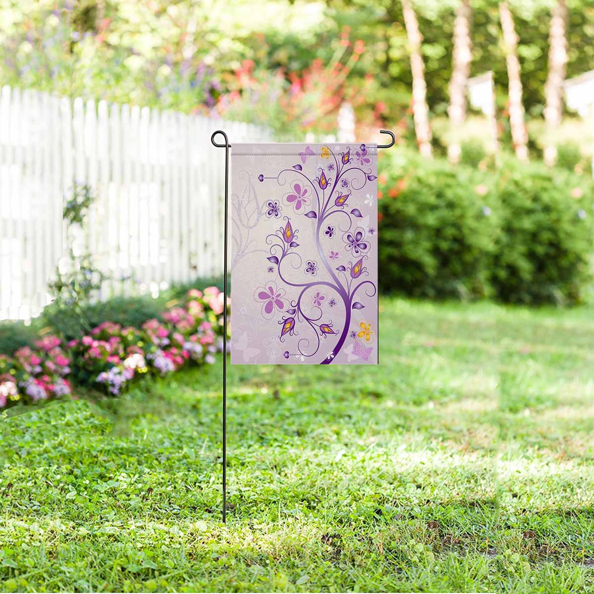 Garden Flags printed floral themed with Spring pink floral with branch, flowers and butterflies