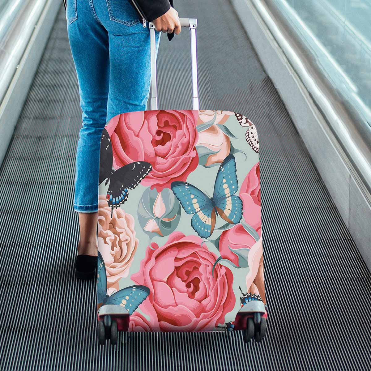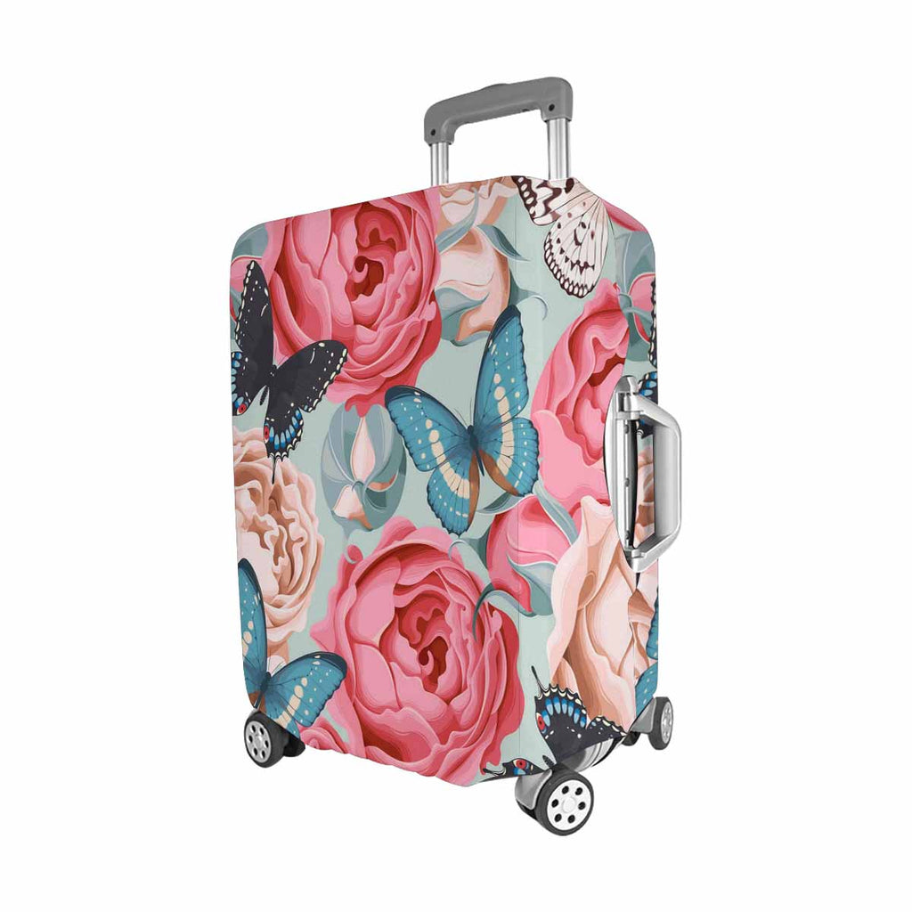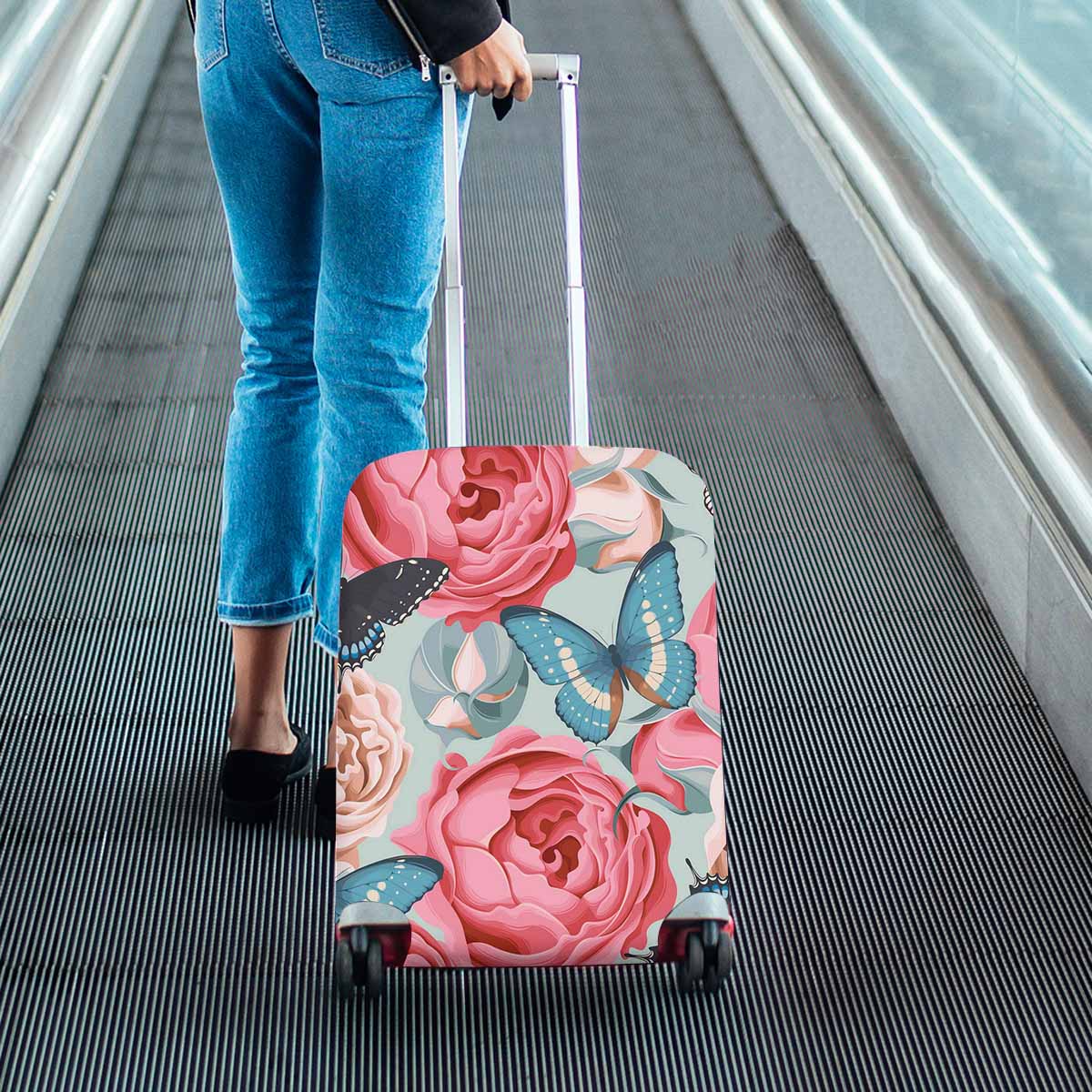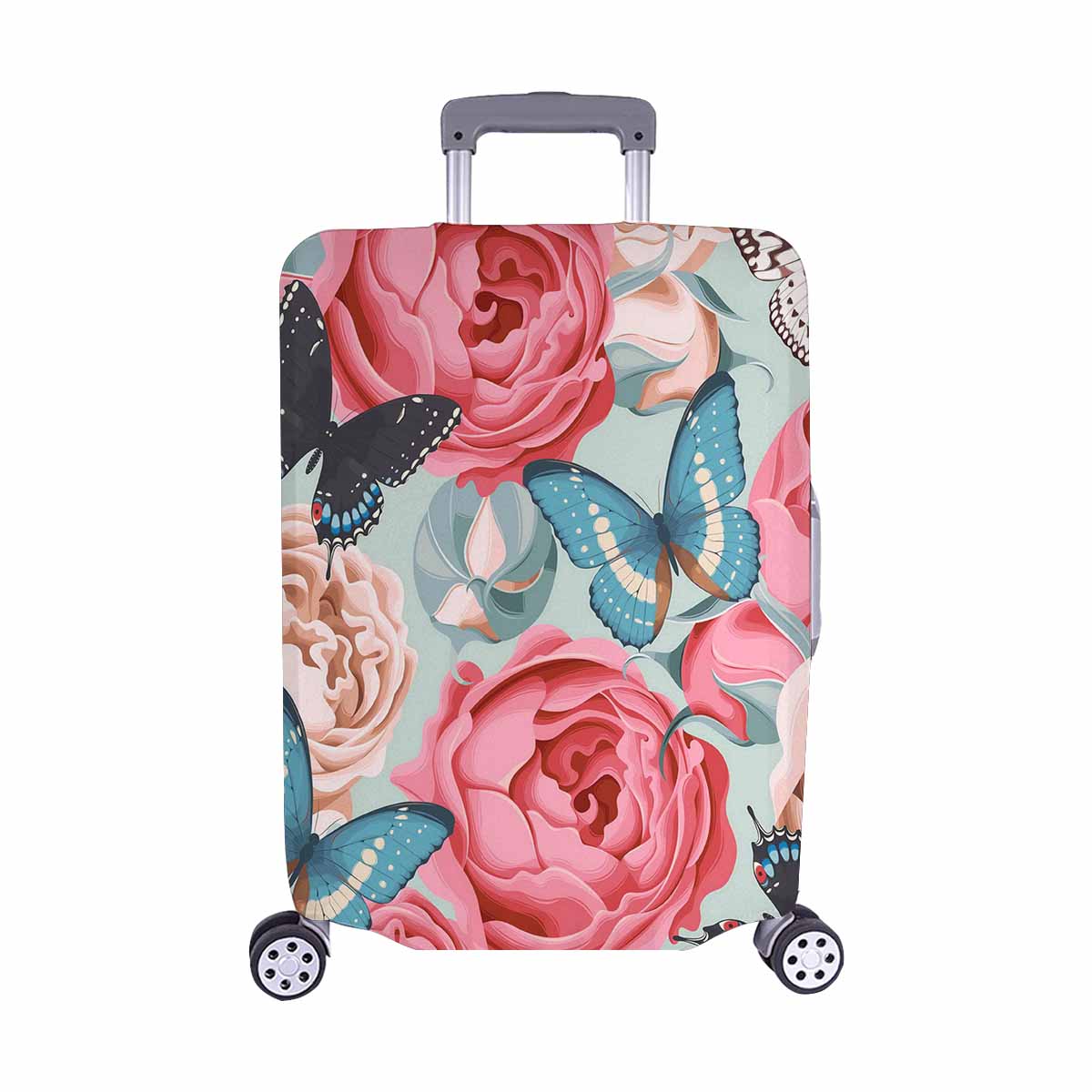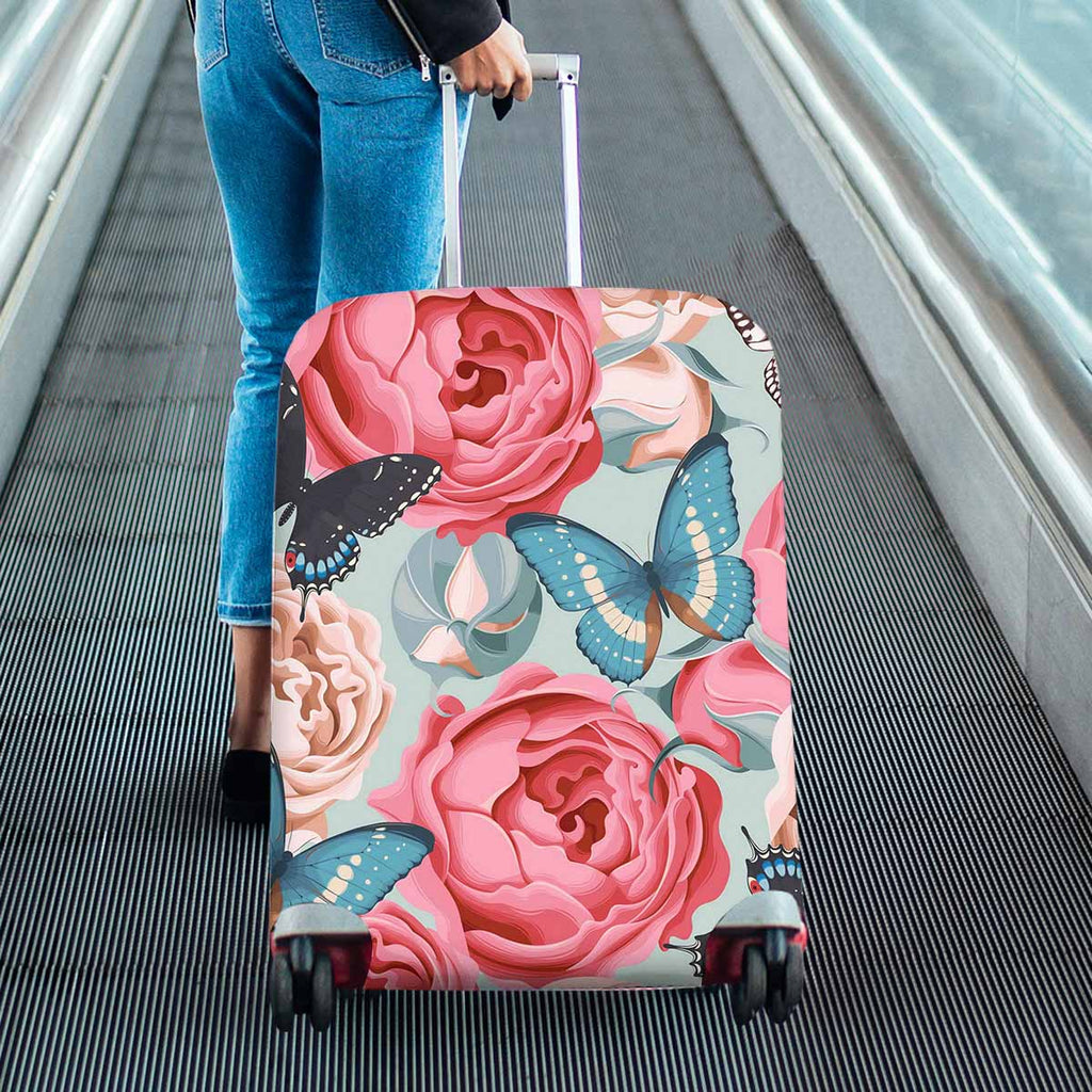 Floral themed Cover for Luggage suitcase printed peony roses and butterfly