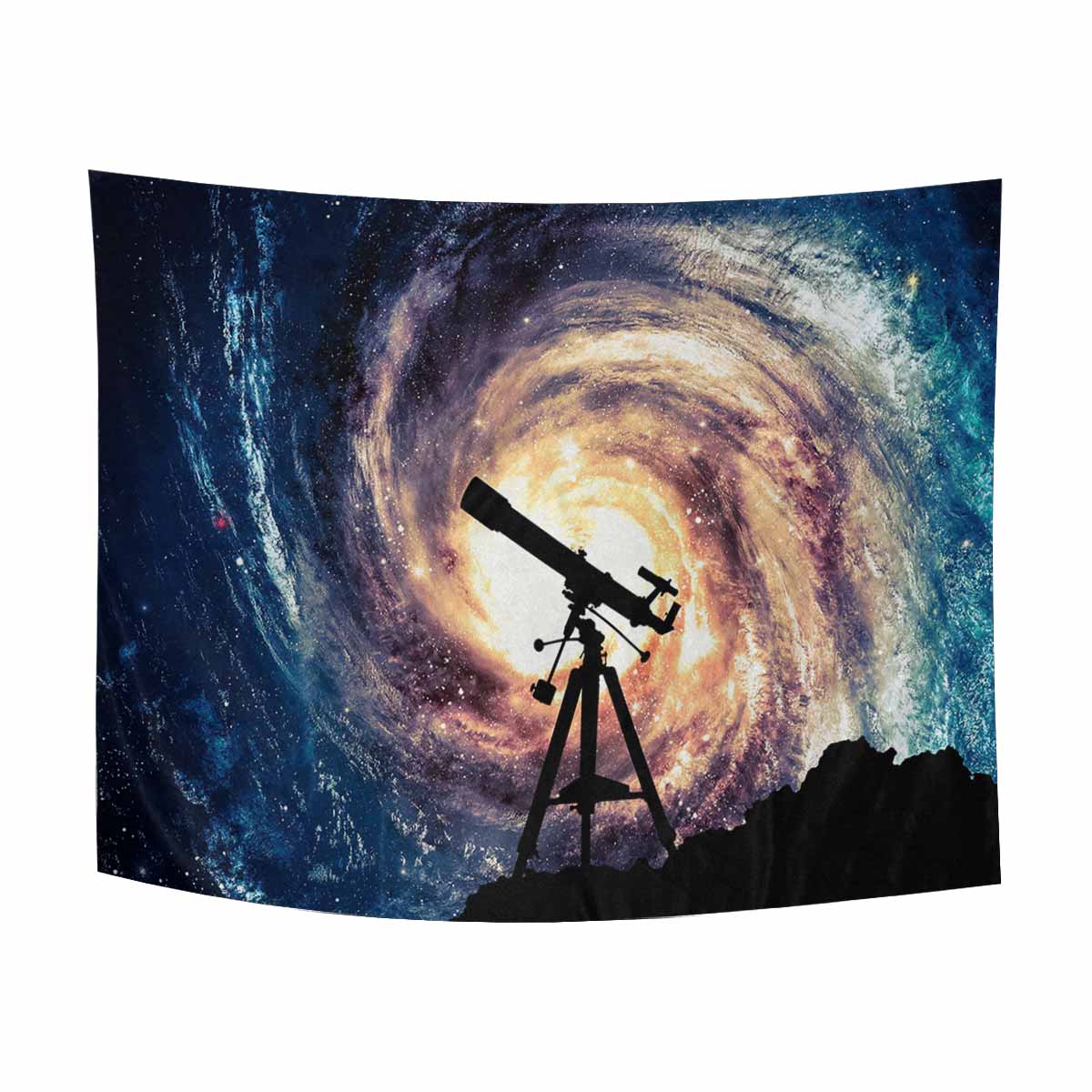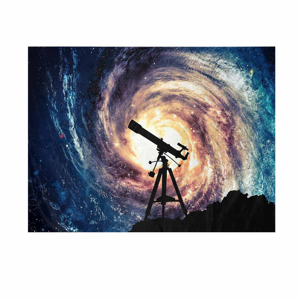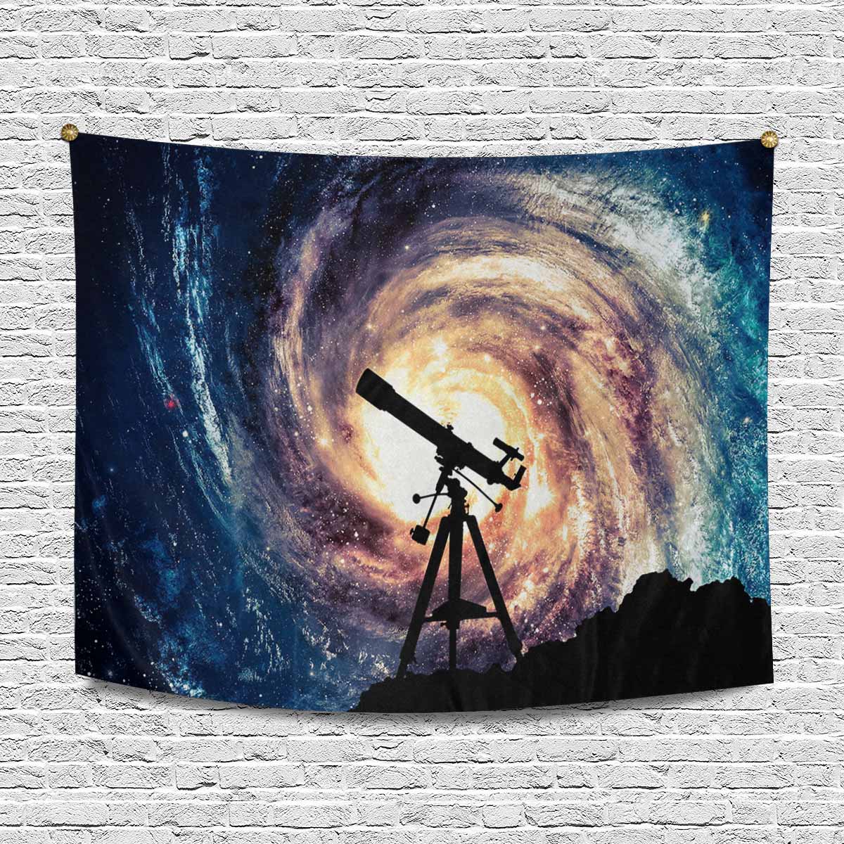 Galaxy themed Wall Tapestries printed Silhouette of Telescope