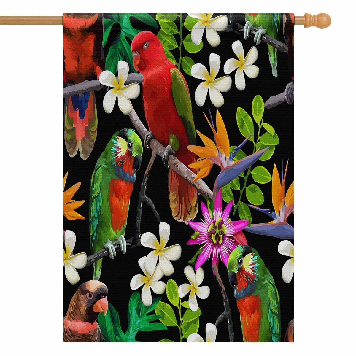 Garden Flags printed animals themed with Exotic birds and beautiful flowers