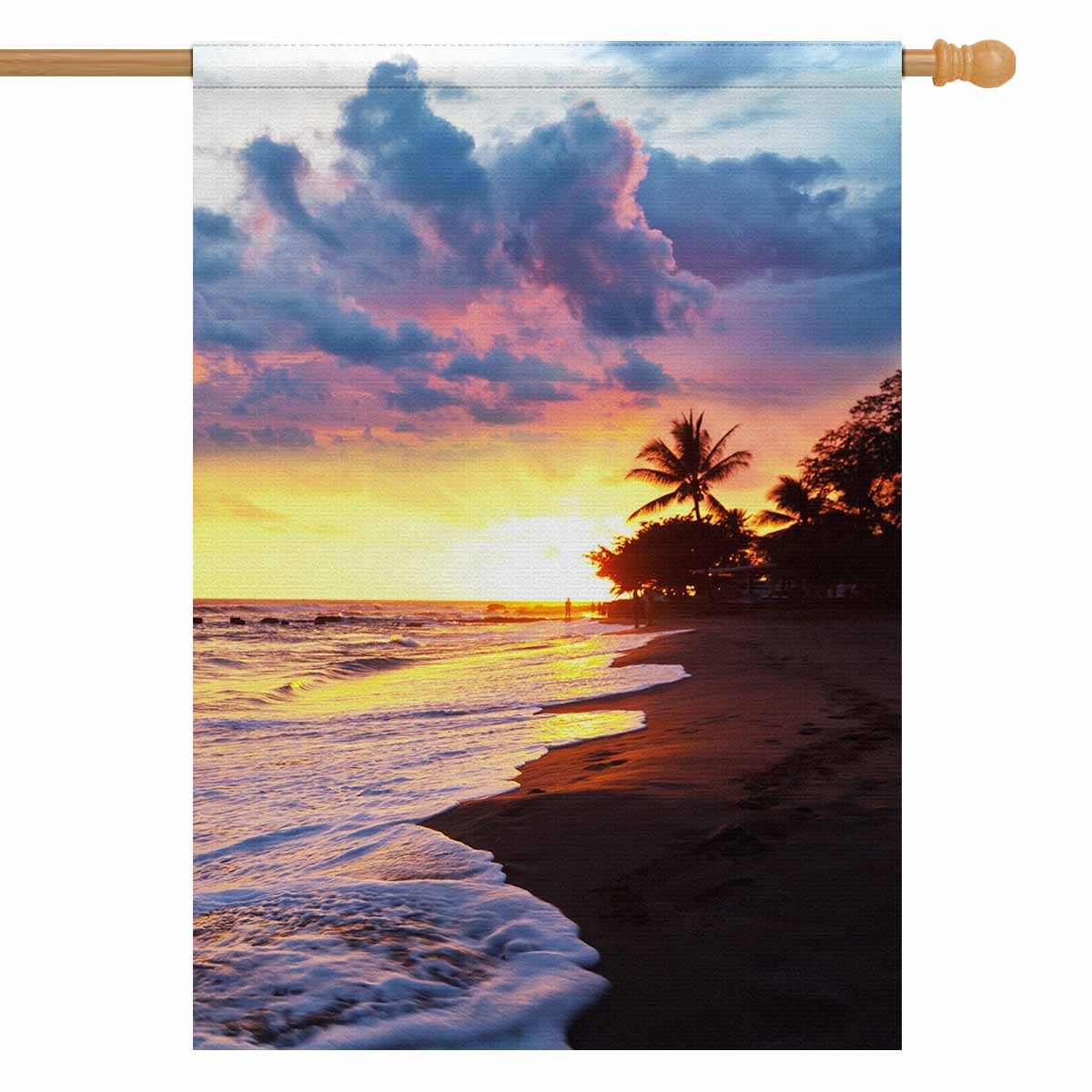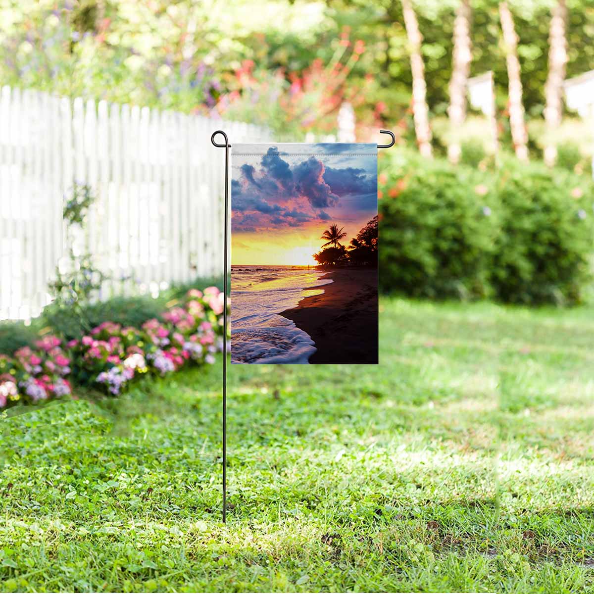 Garden Flags printed tropical themed with sea sunset in Olympic Park coast