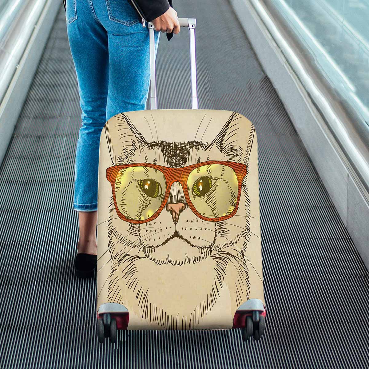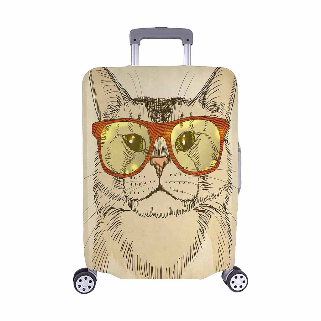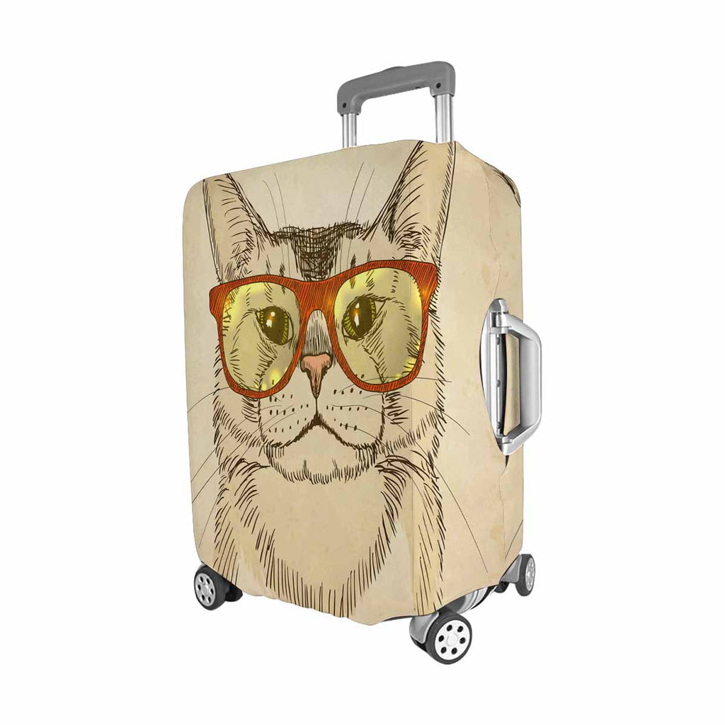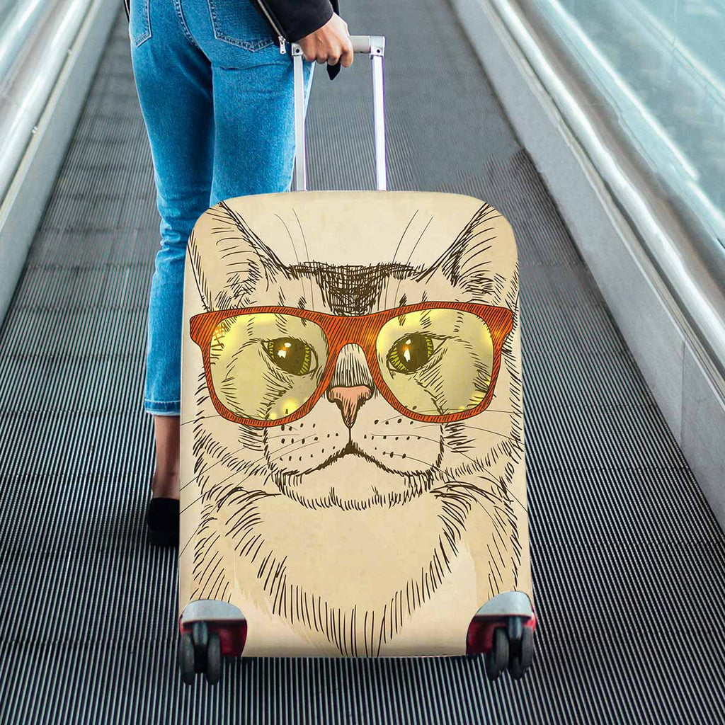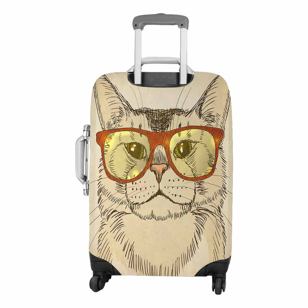 Animals themed Cover for Luggage suitcase printed Hipster Cat with Eyeglasses