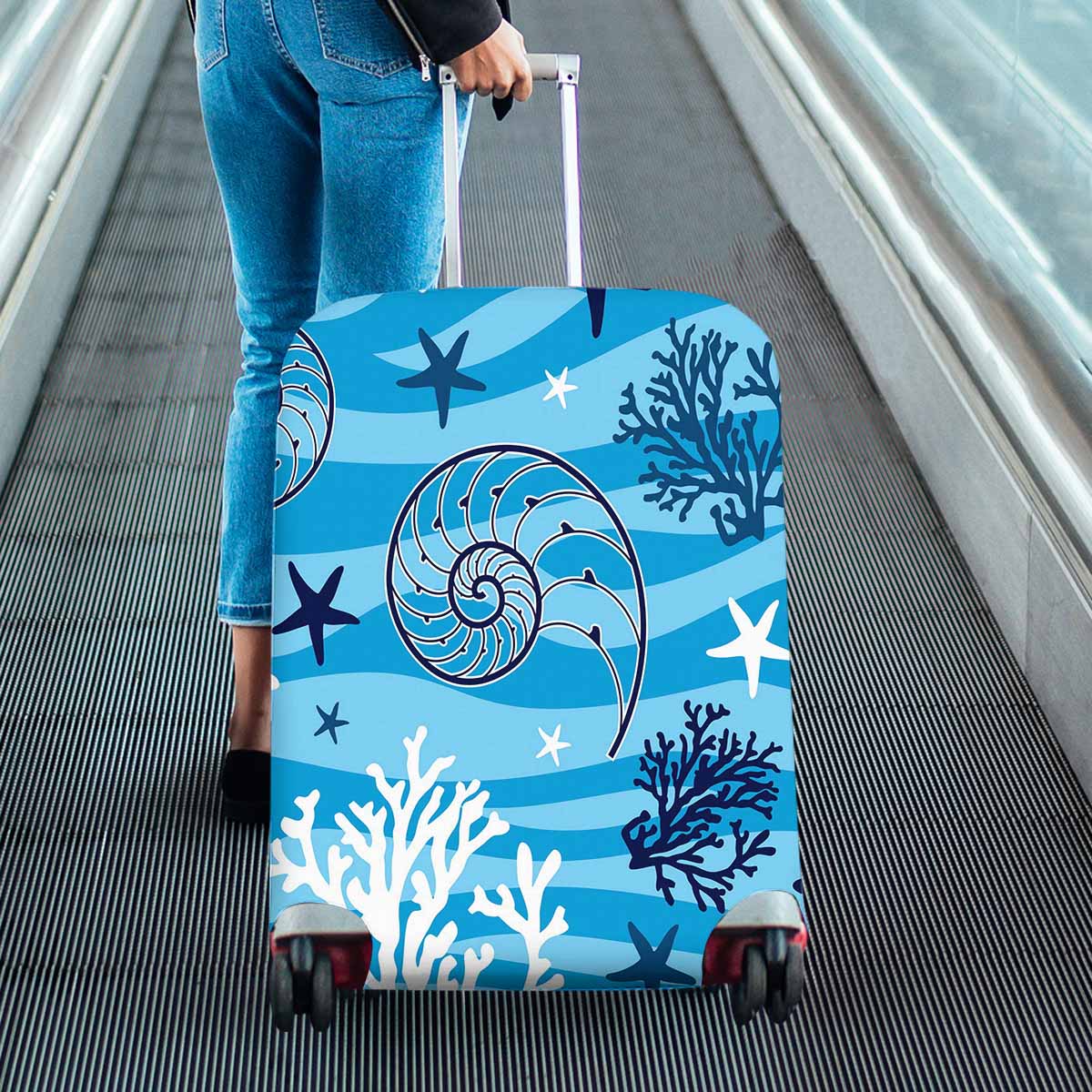 Animals themed Cover for Luggage suitcase printed Shells and starfish Marine pattern