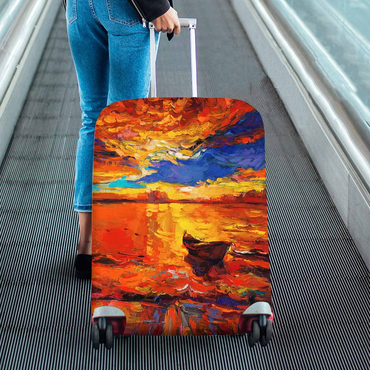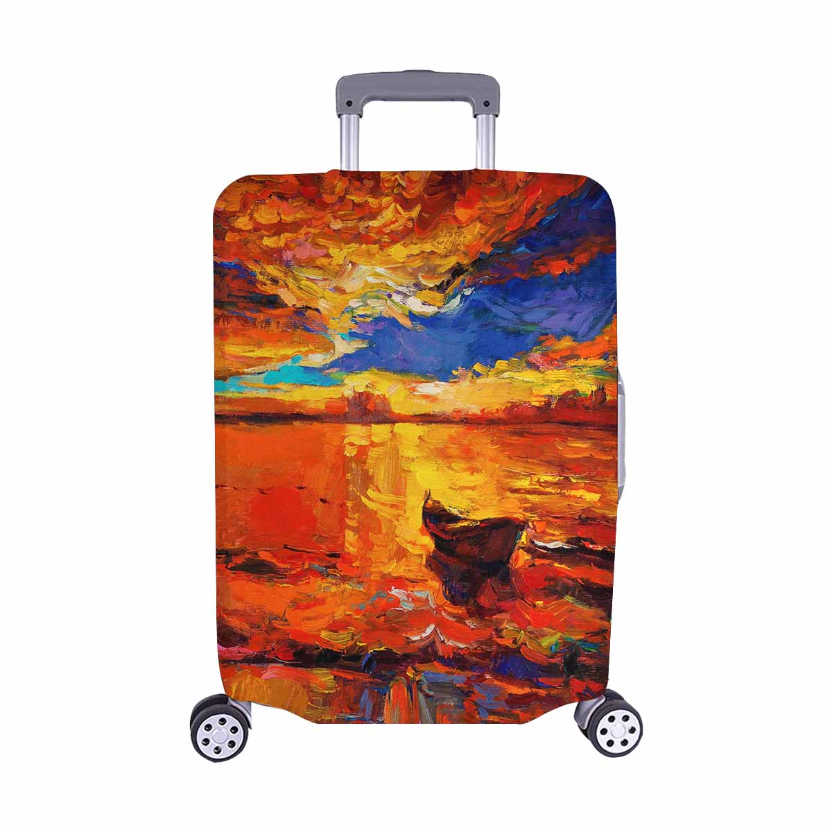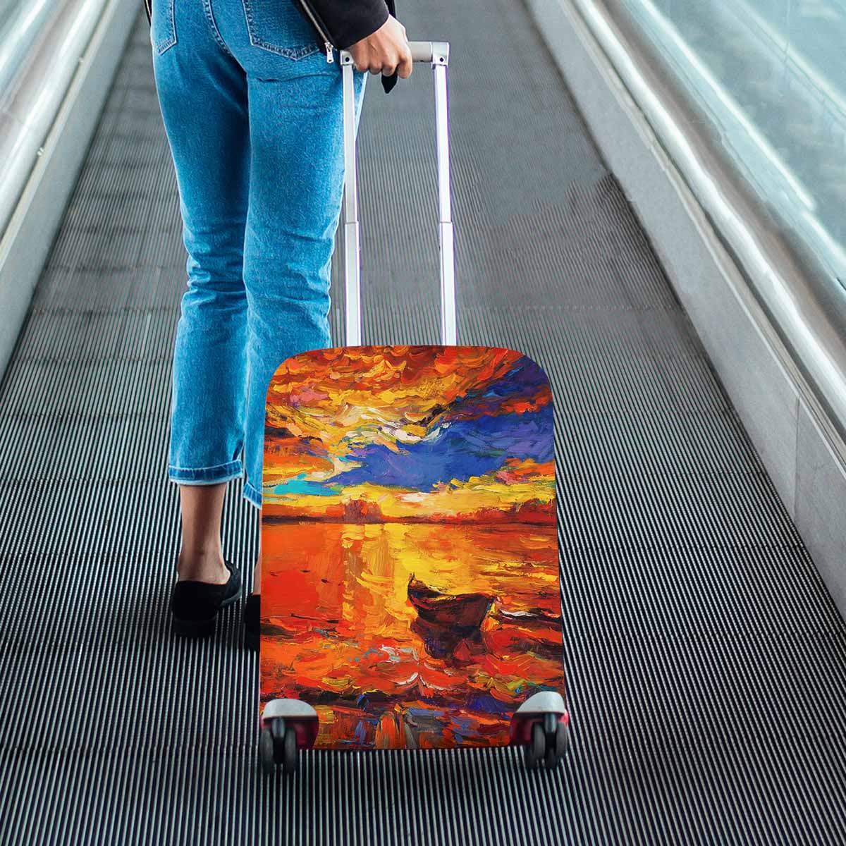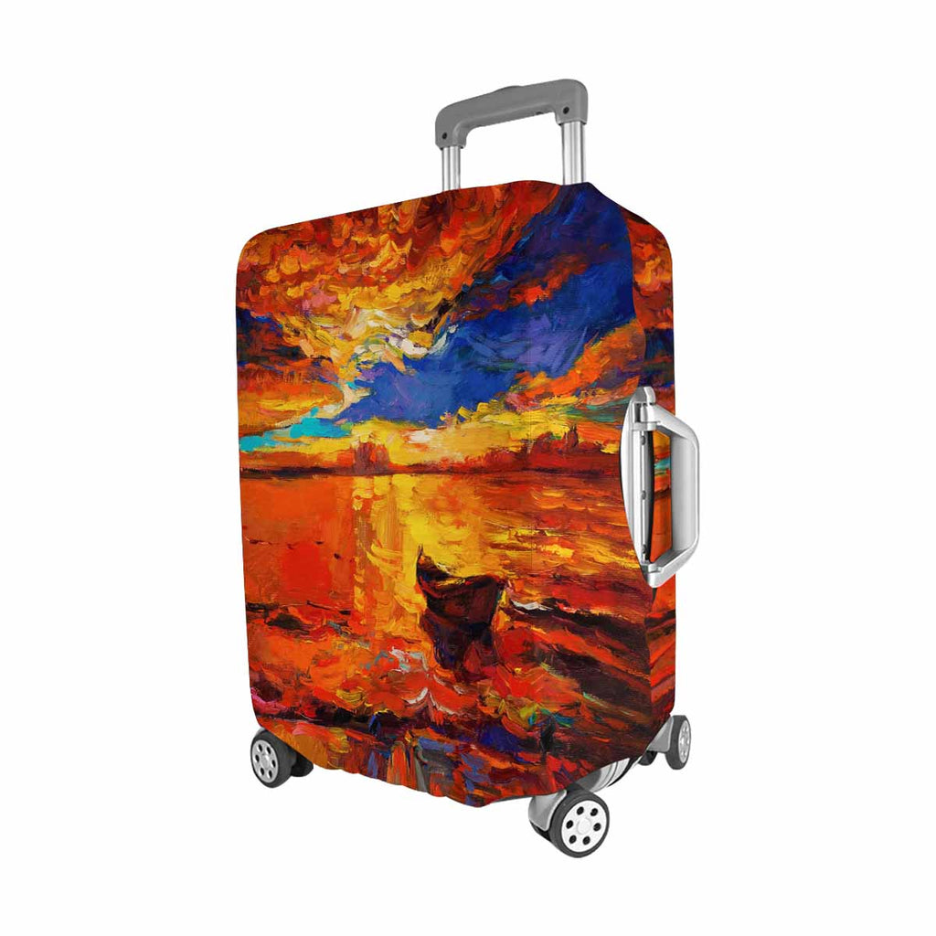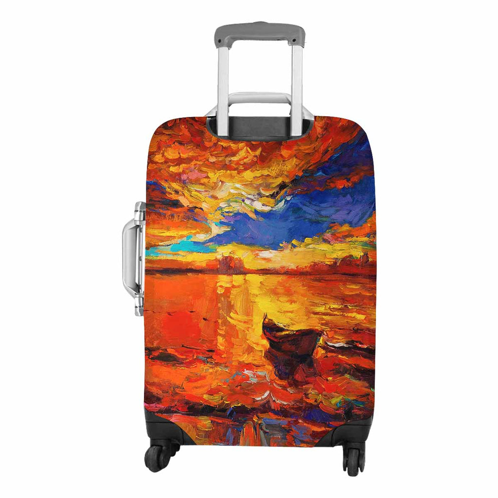 Arts themed Cover for Luggage suitcase printed A boat on golden sunset