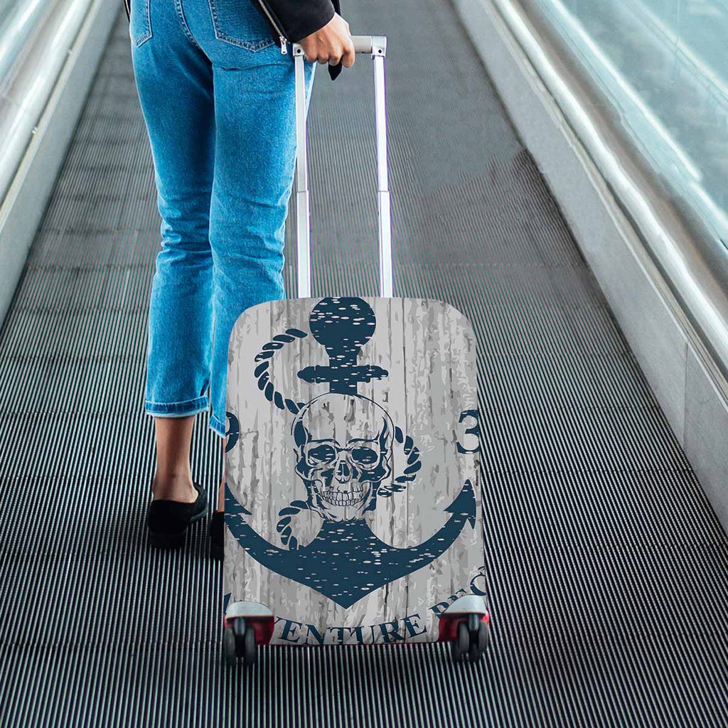 Nautical and Mermaid themed Cover for Luggage suitcase printed Nautical skull marine badge on wood backgroud