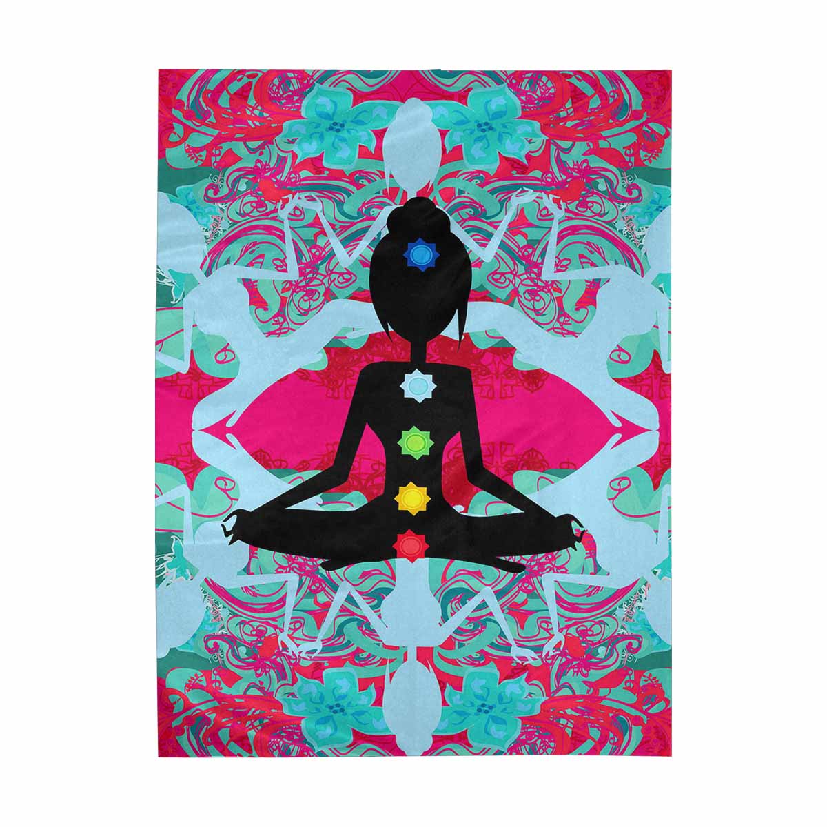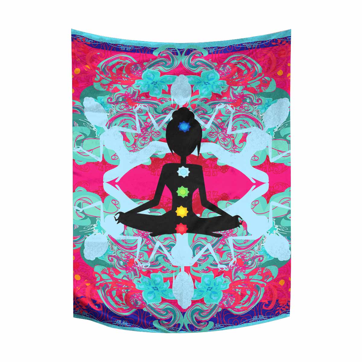 Mandala themed Wall Tapestries Yoga lotus pose. Padmasana with colored chakra points
