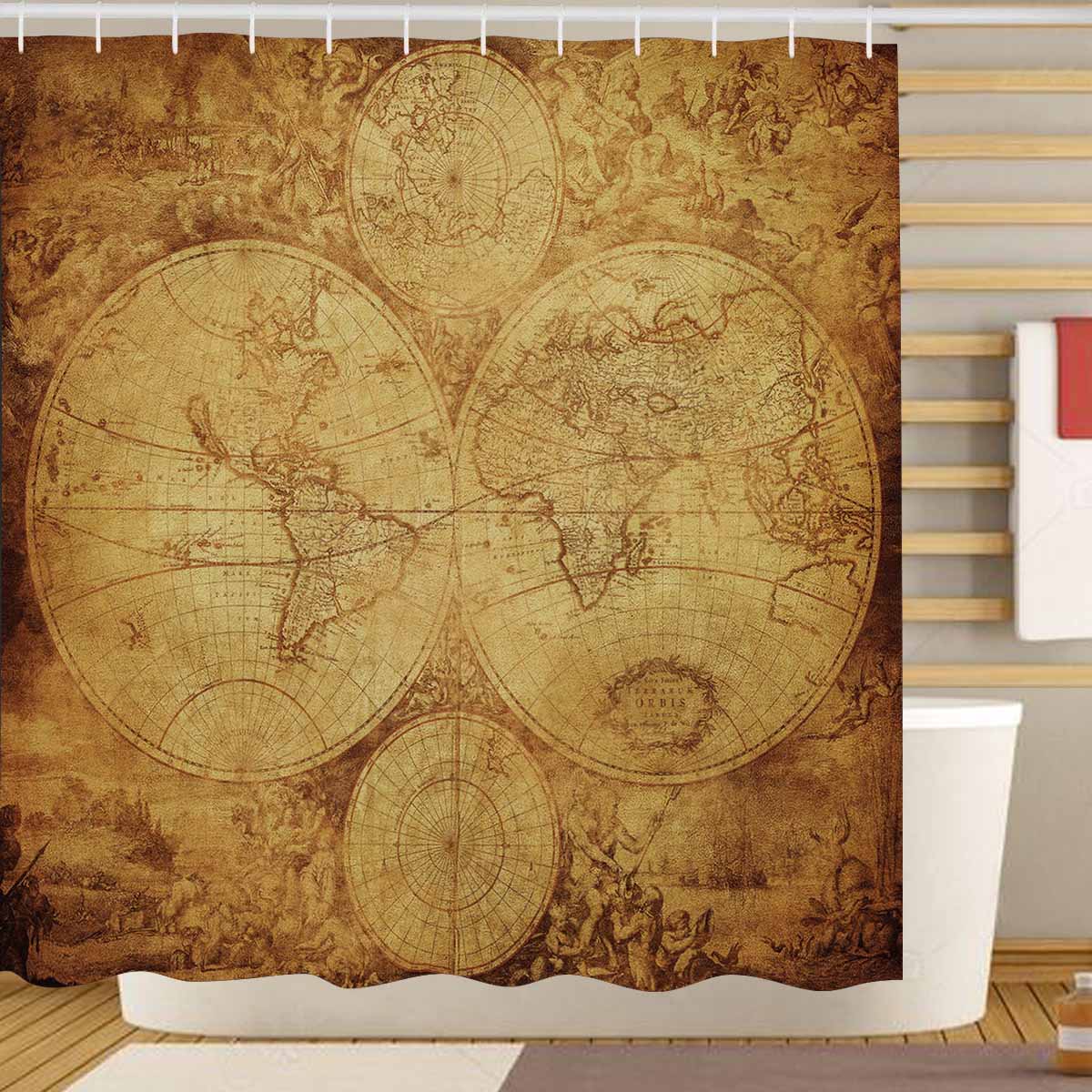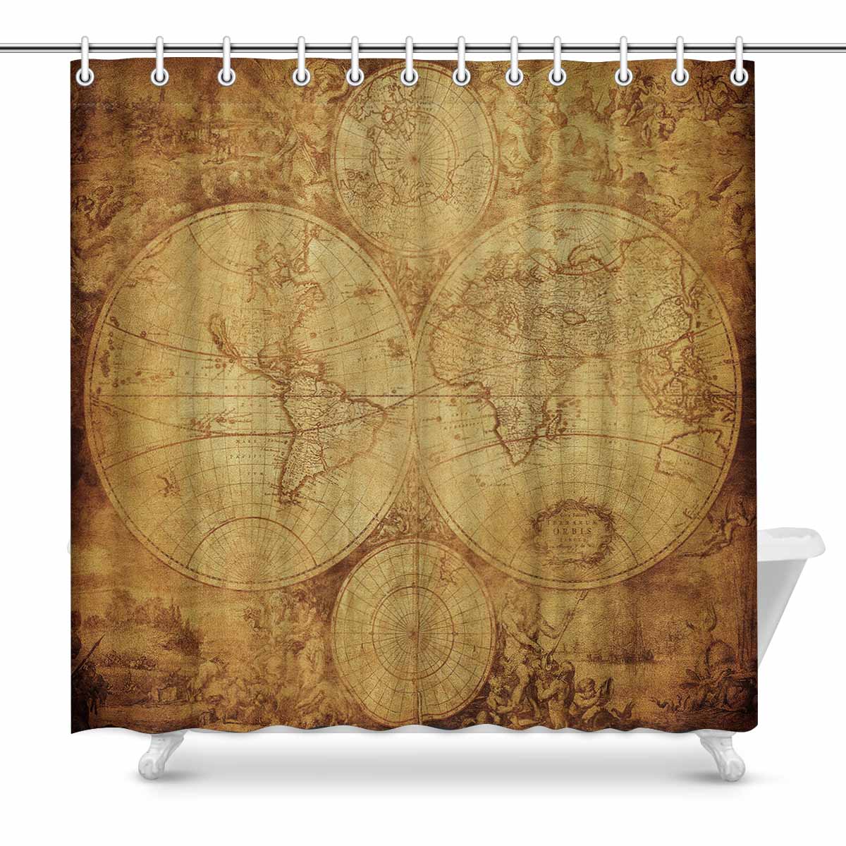 Map themed print on shower curtains for bathroom, create a brilliant atmosphere in your bathroom, include a selection of different stylish and custom-made designs for your bath decoration.