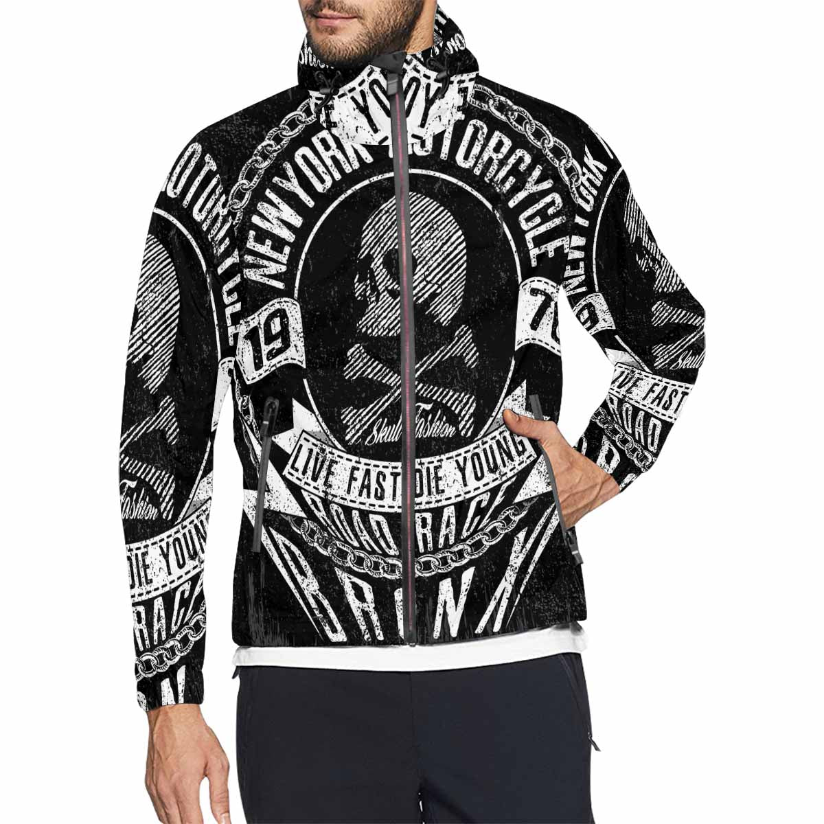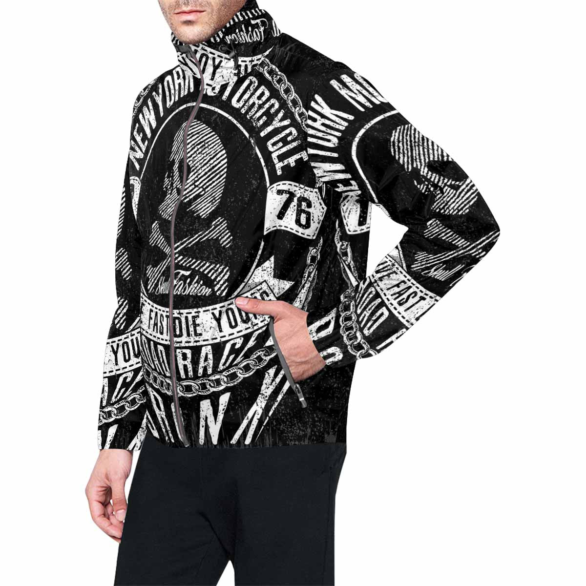 Men's Windbreaker printed 1976 new york motorcycle slogan
