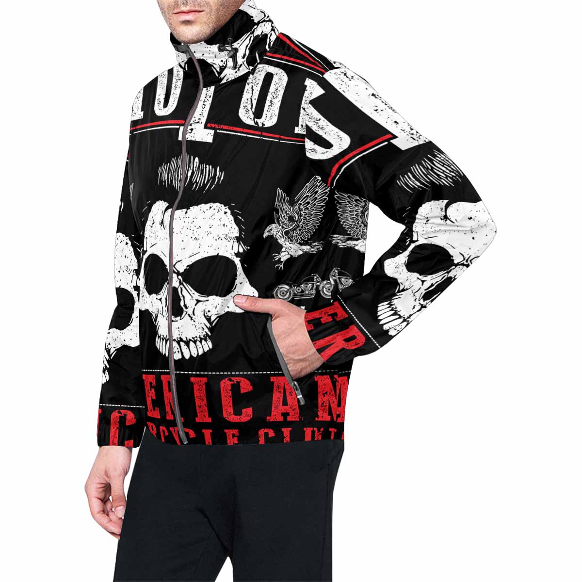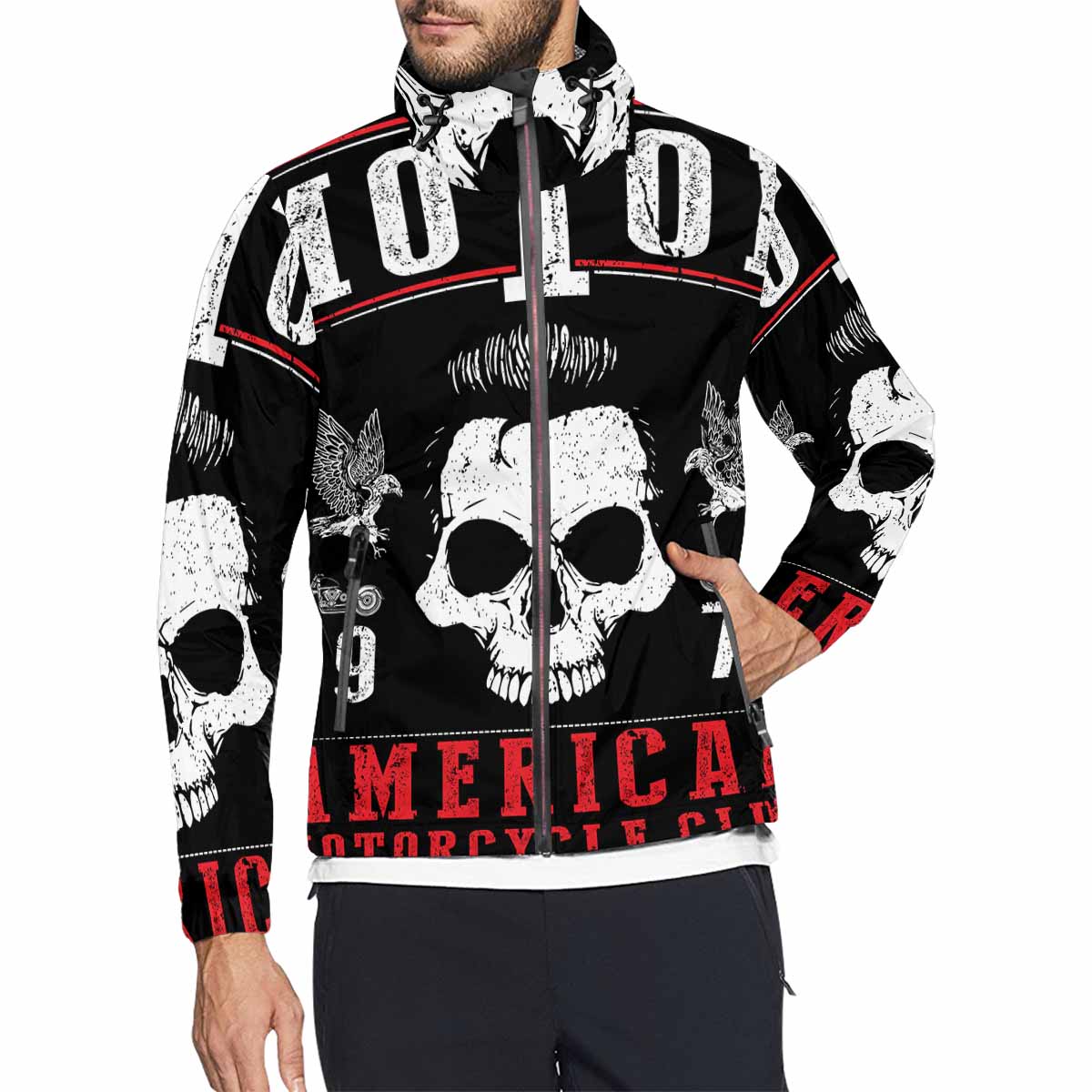 - Dye-sublimation printing, Personalized all-over print full zip windbreaker for men.
