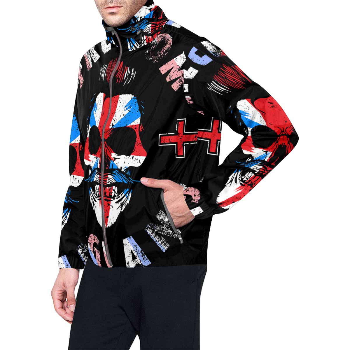 - Dye-sublimation printing, Personalized all-over print full zip windbreaker for men.