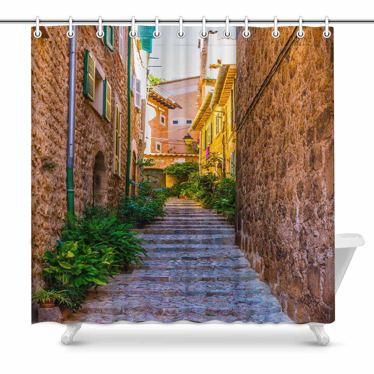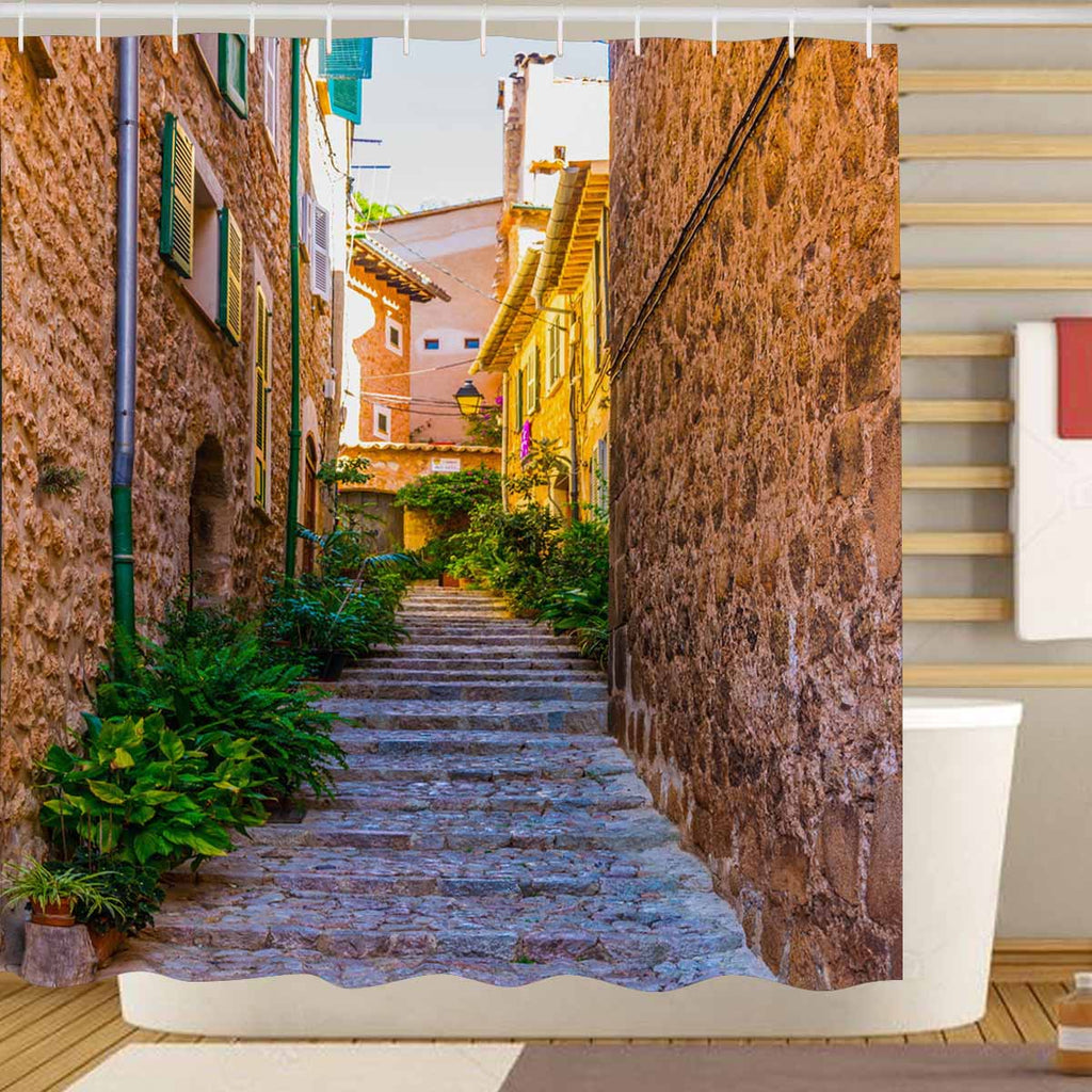 Mordern And Coutry themed Shower Curtains print A narrow street in the spanish village