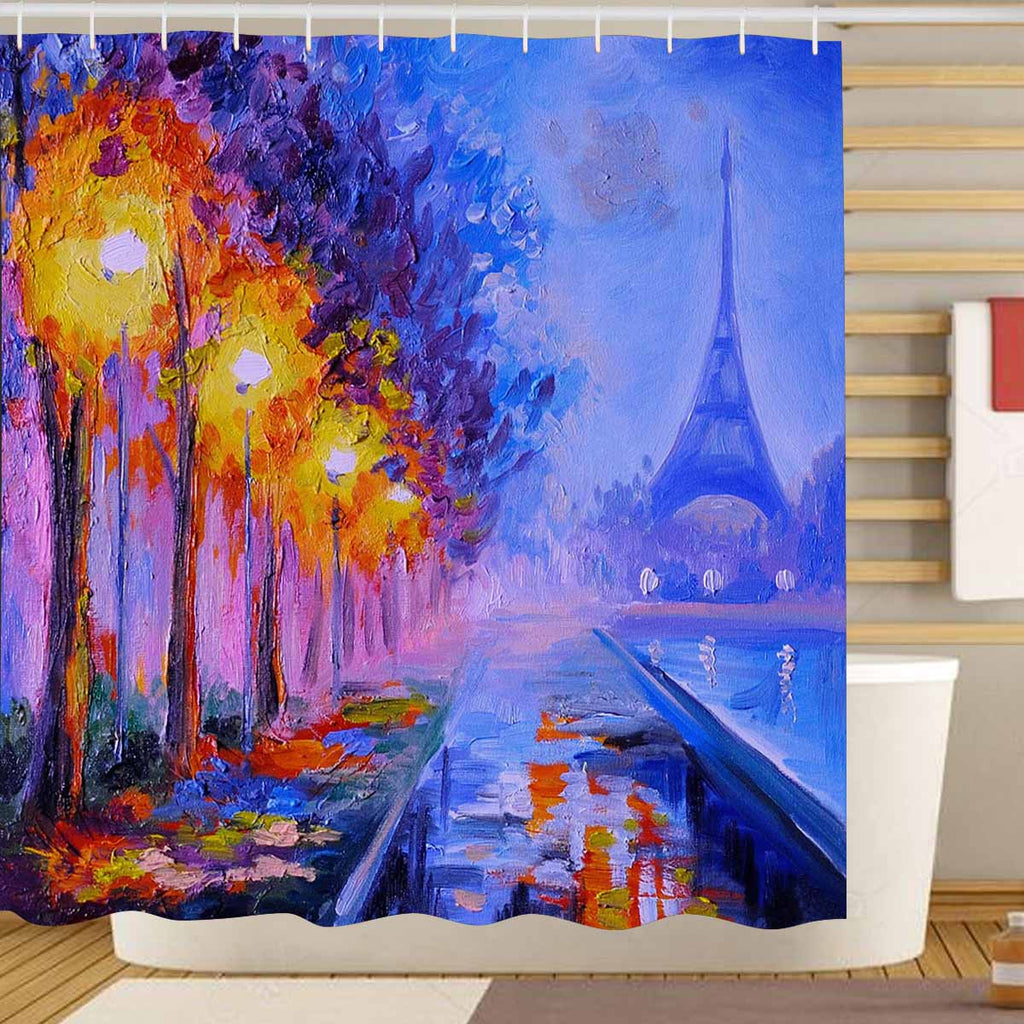 Mordern And Coutry themed Shower Curtains print Oil painting of eiffel tower, france
