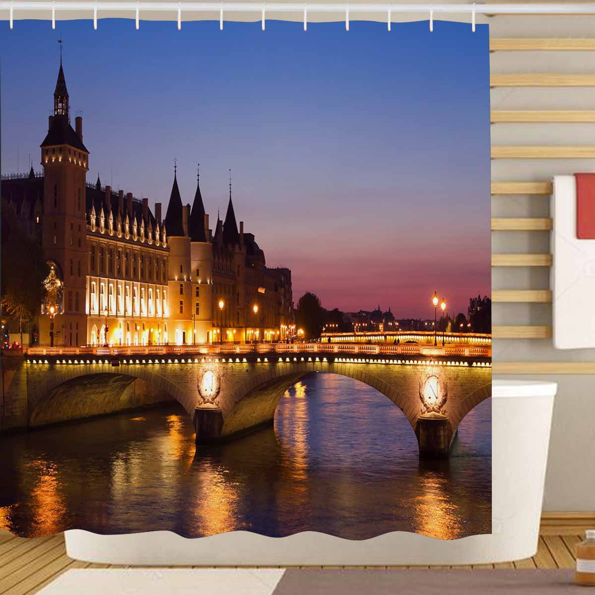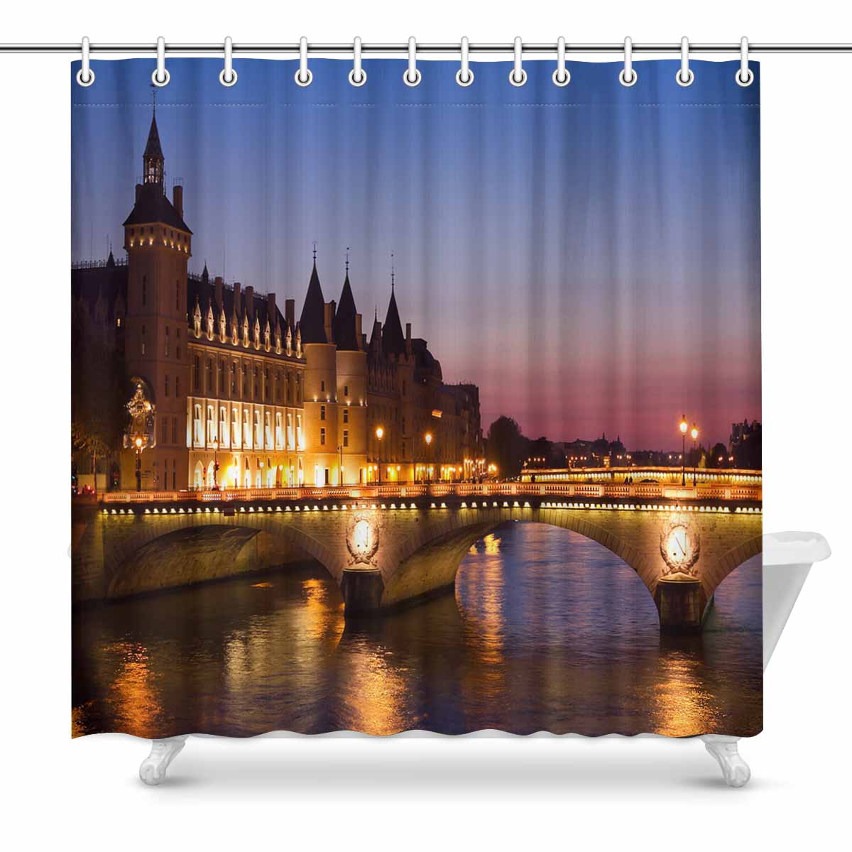 Mordern And Coutry themed Shower Curtains print Paris by night,Seline River Bridge