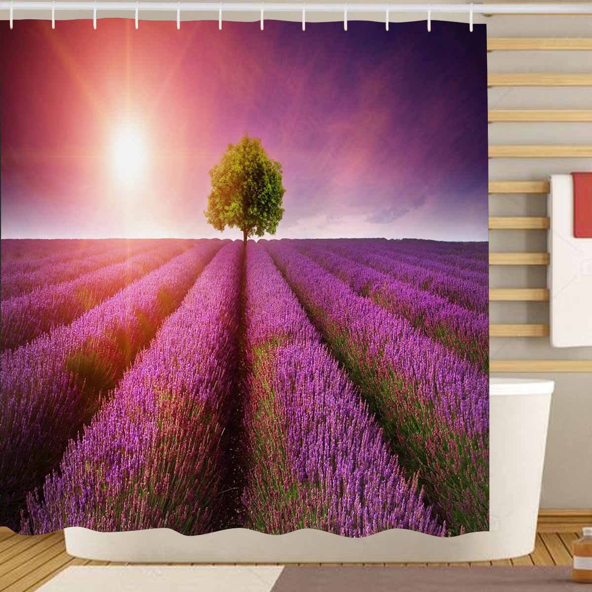 Mordern And Coutry themed Shower Curtains print Stunning lavender field landscape Summer sunset with single tree