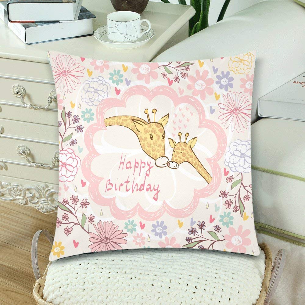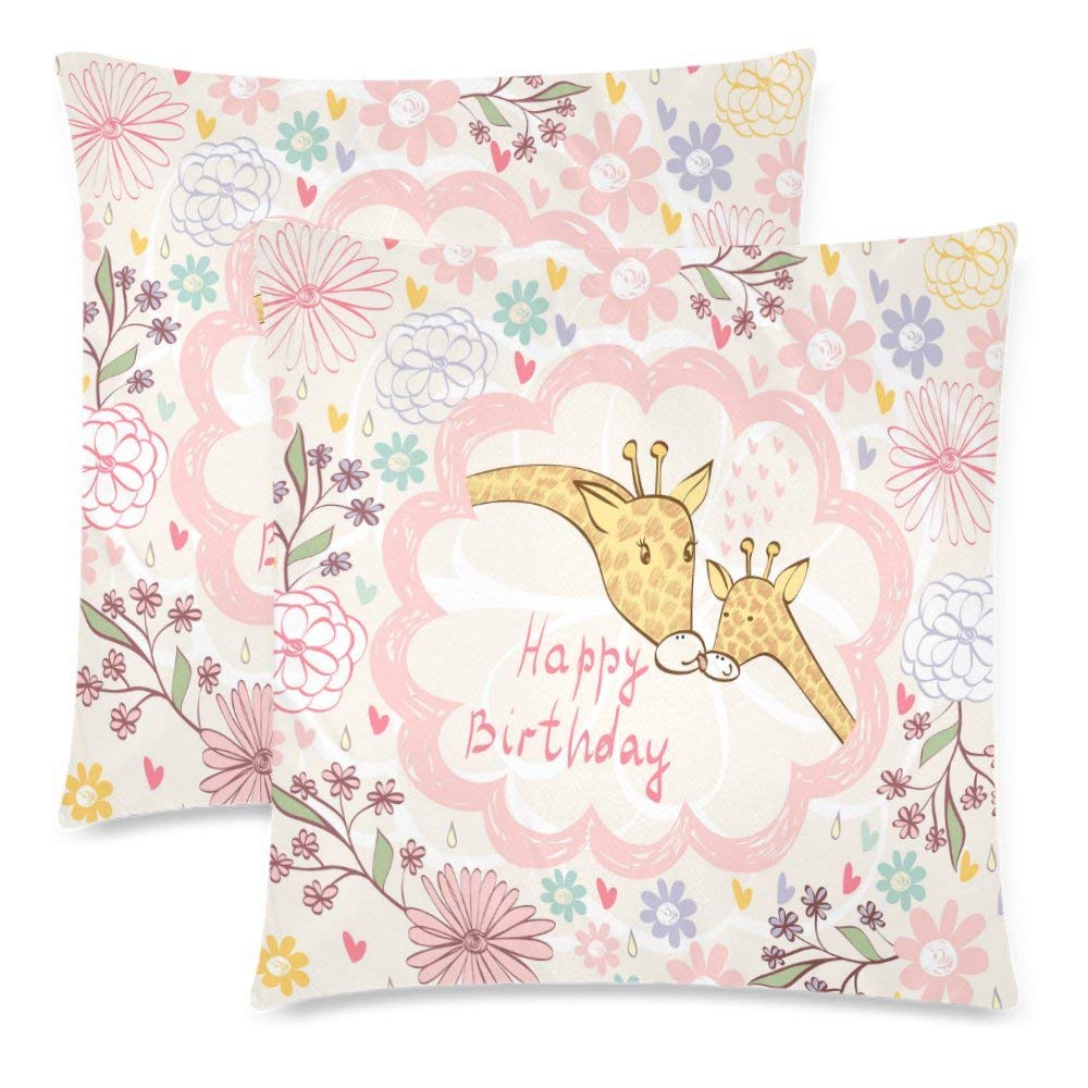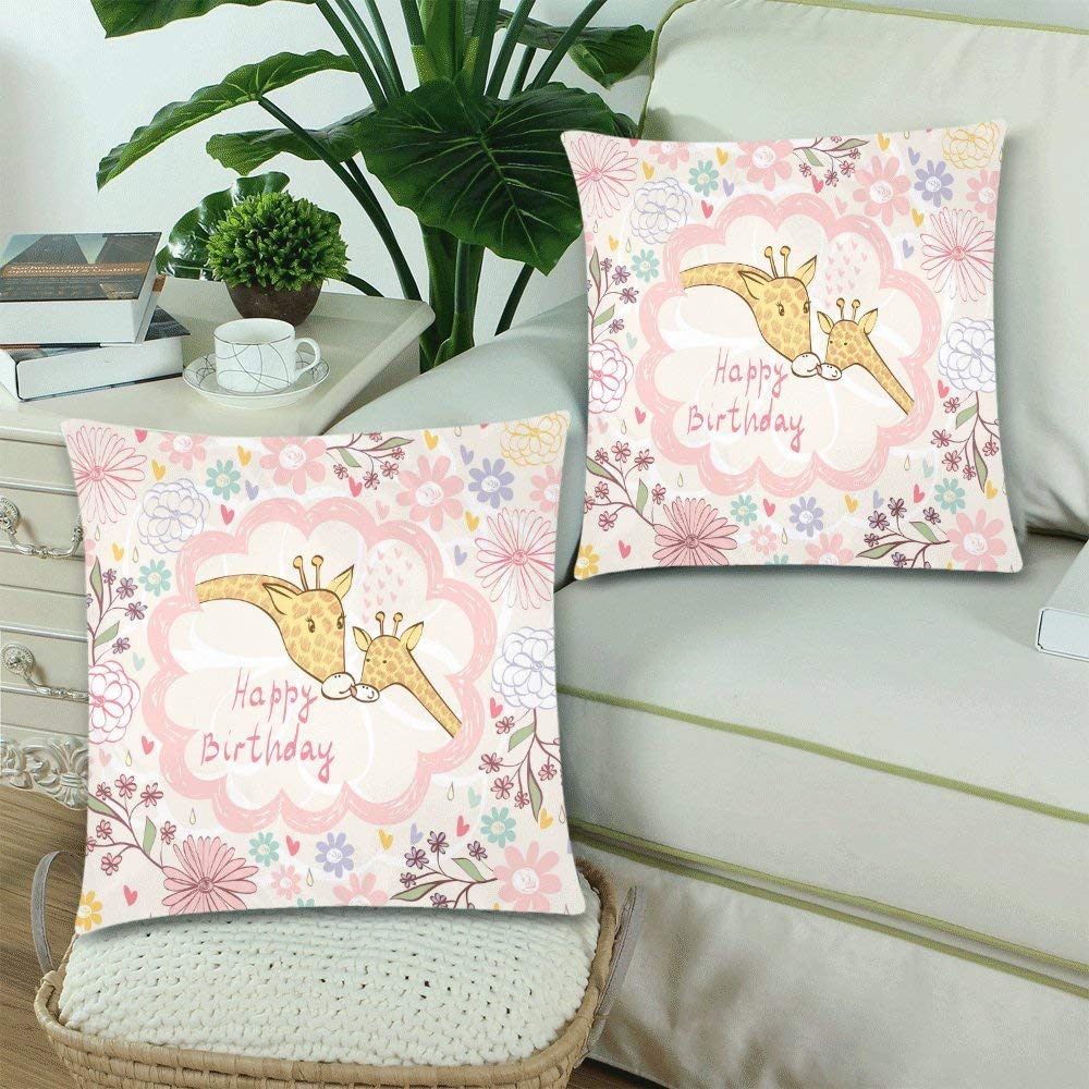 Baby Giraffe and Mom Throw Pillow Cover Cushion Case 18x18, Happy Birthday Gift Zippered Pillowcase Set Shams Home Decorative, Set of 2