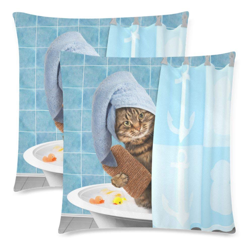 Funny Hipster Animal Cat Taking a Bath Pillowcase Cushion Case 18x18 Twin Sides for Couch Bed Set of 2