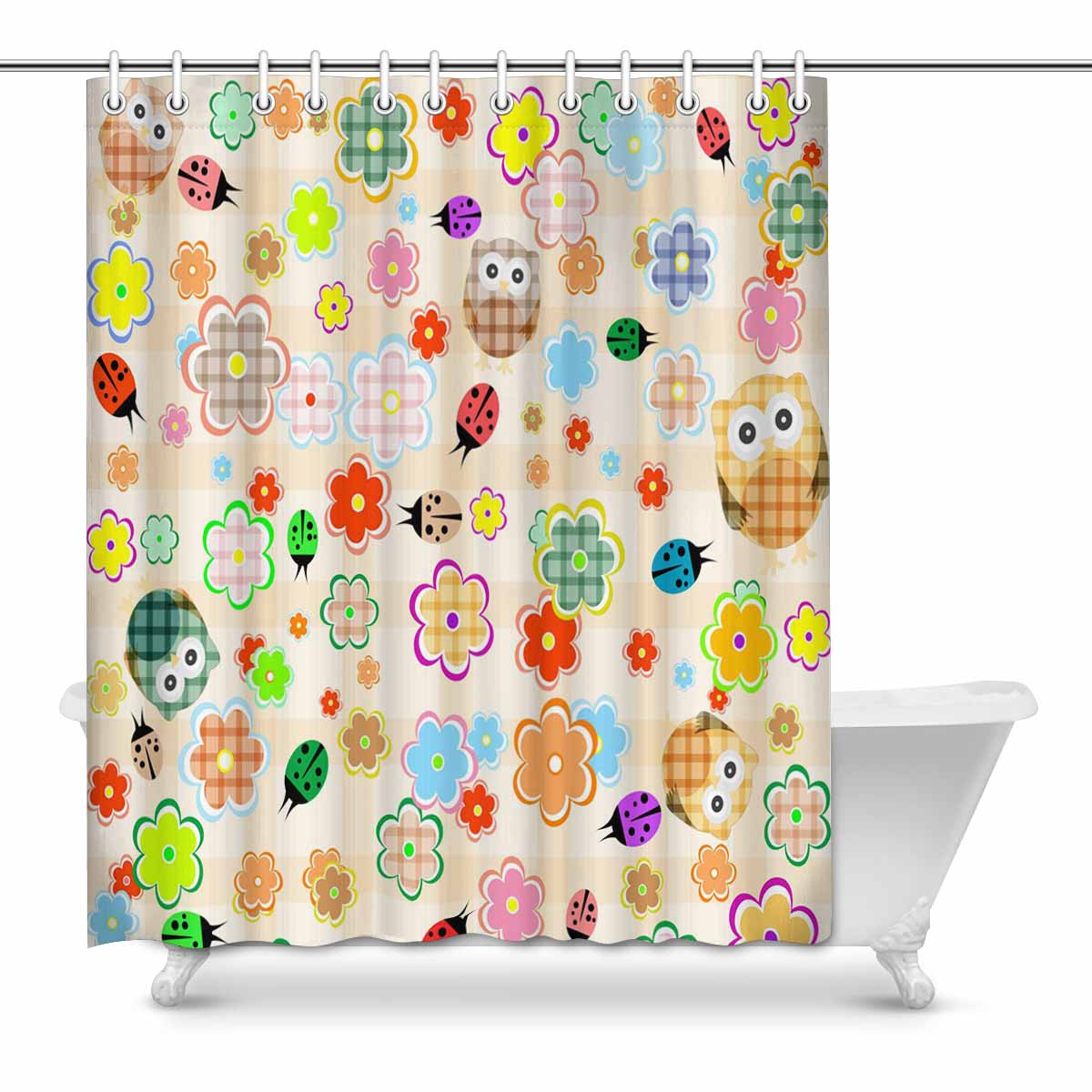 Bathroom Shower Curtain 60in*70in with colorful cute owls flowers pattern