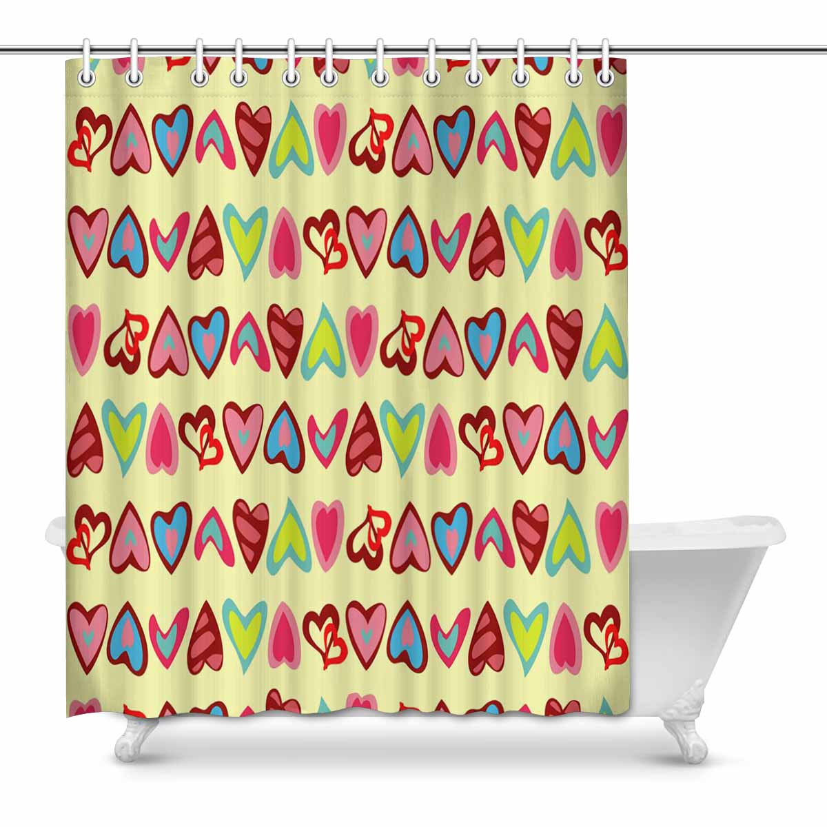 Bathroom Shower Curtain 60in*70in with cute colorful hearts