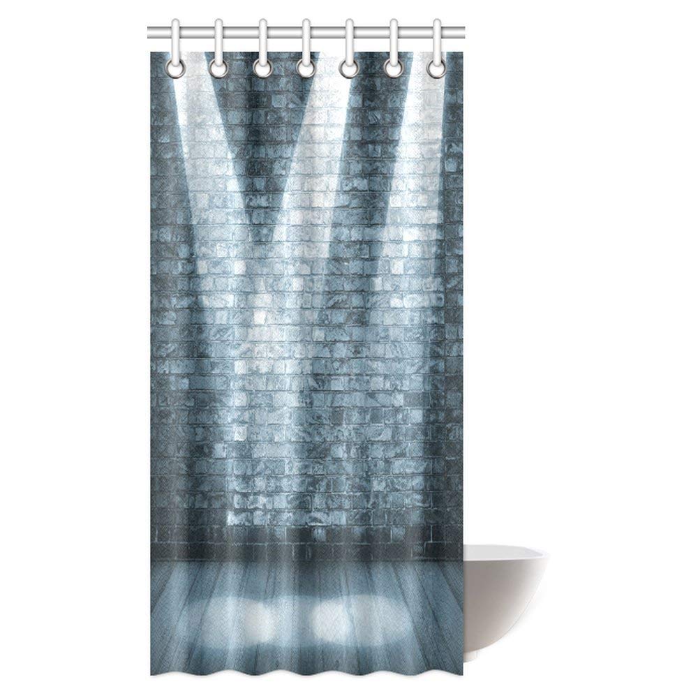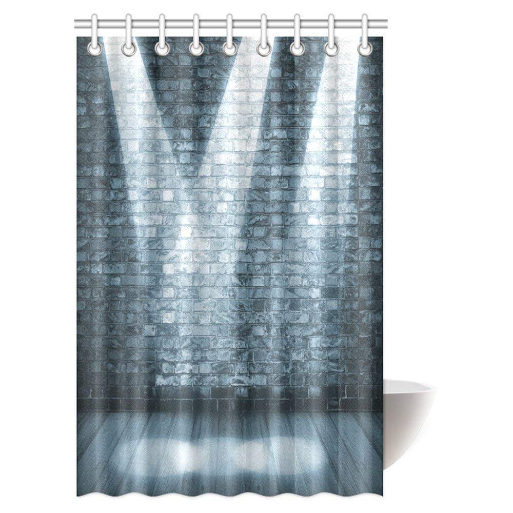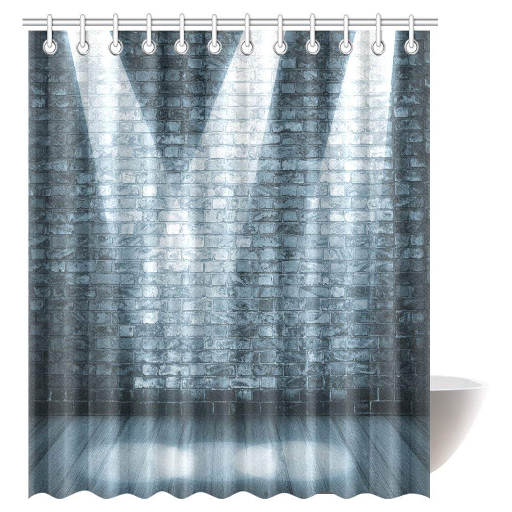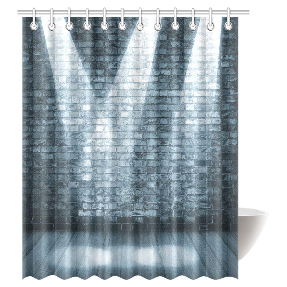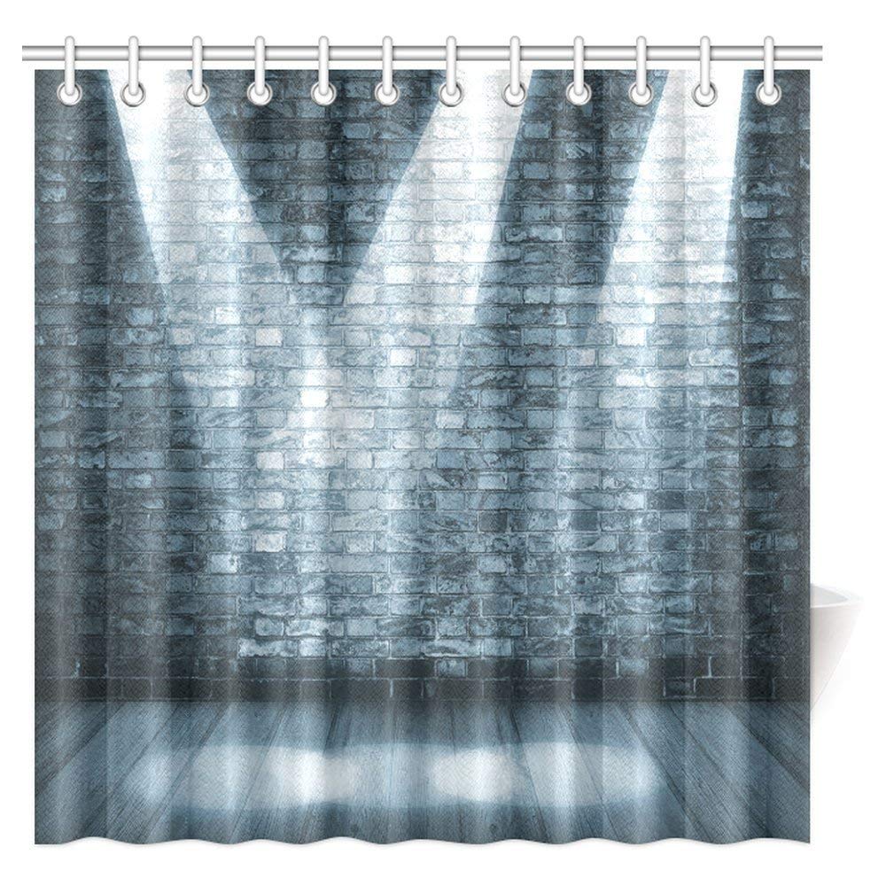 Grunge Decor Shower Curtain, Brick Wall in a Room with Interior Luminous Shine Spot Light Projection Fabric Bathroom Shower Curtain Set with Hooks